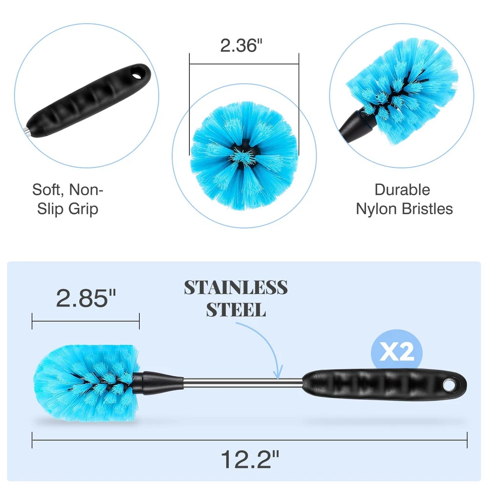 Bottle Brush Cleaner Set, Long Handle 3-in-1 Stainless Steel Water Bottle Cleaning Brush for Washing Narrow Neck Bottle, Sport Bottle, Baby Bottle, Flask, Tumbler, Straw, Cup Cover. HIGH-QUALITY BRUSH: The water bottle cleaning brush is made of high-quality stainless steel and durable nylon material, which is comfortable and durable, harmless to the human body, and will not leave scratches on the bottle ANTI-SLIP & EXTENDED HANDLE: The rubber-covered handle and ergonomic groove design have anti-slip function. The 12.2 inch extended cleaning brush design can easily reach the bottom of the bottle, and deep cleaning can be done easily 360-DEGREE CLEANING: The full-coverage bristles can achieve 360-degree cleaning without dead ends, and the flexible brush can easily extend into the narrow-mouth bottle. Whether it is turned clockwise or counterclockwise, our water bottle cleaning brush can clean quickly EASY TO HANG: The handle of the water bottle cleaning brush has a hanging hole design, which can hang them on hook for drying when it is not needed for easy storage. The two devices can be replaced at any time MULTI-FUNCTION: AnDocK Brushes sets Includes 2×12.2 inches bottle brushes with stainless steel handle, 10.6 inches straw tube cleaning brushes, 4.3 inches spout cleaning brush. With this complete set of cleaning tools, you'll have everything you need to keep your drinkware sparkling clean and ready for use SHIPPING Domestic Buyers - We have confidence in our products, but if you are not fully satisfied please contact us within 30 days of purchase and you will get full refund. - We ship within 3 business days of payment, usually sooner - We offer FREE shipping on all orders! - We only ship to the lower 48 states, no APO/FPO addresses or PO Boxes allowed International buyers – please note: Import duties, taxes, and charges aren't included in the item price or postage cost. These charges are the buyer's responsibility. - Please check with your country's customs office to determine what these additional costs will be prior to bidding or buying. * Order Cancellation Policy ** You can return a product for up to 30 days from the date you purchased it. 1. The seller reserves the right to cancel the special case only due to eBay cancellation fee. 2. The decision of seller is the final. 3. The seller will respond to the cancellation request within 2 business days. Please wait for the result of cancellation. 4. In case the cancellation is not completed by some reasons, the buyer can follow the options below to get the refund. 4.1 The buyer can reject the item when it arrives. 4.2 The buyer can send the item back to the seller within 30 days If the buyer receives item (USA Shipment ONLY). The seller will provide the FREE return label to the buyer when the buyer opens " Return Item" case on eBay by using the reason as "Change my mind" ONLY. 5. When buyer has placed the order. The order will be processed and completed by automatic warehouse system within 5 minutes. In case that buyer sends the cancellation request after 5 minutes of placing the order, the request will be rejected. **Sending direct message to cancel the order is not allowed for every case.* Return Policy For the return case - If buyer would like to return the items for refund or replacement, please CONTACT SELLER to receive the free return label from seller. The refund or replacement will be processed with the tracking number of return label which is provided by seller only. The other ways of return which are not approved by seller will not be processed for the refund or replacement.