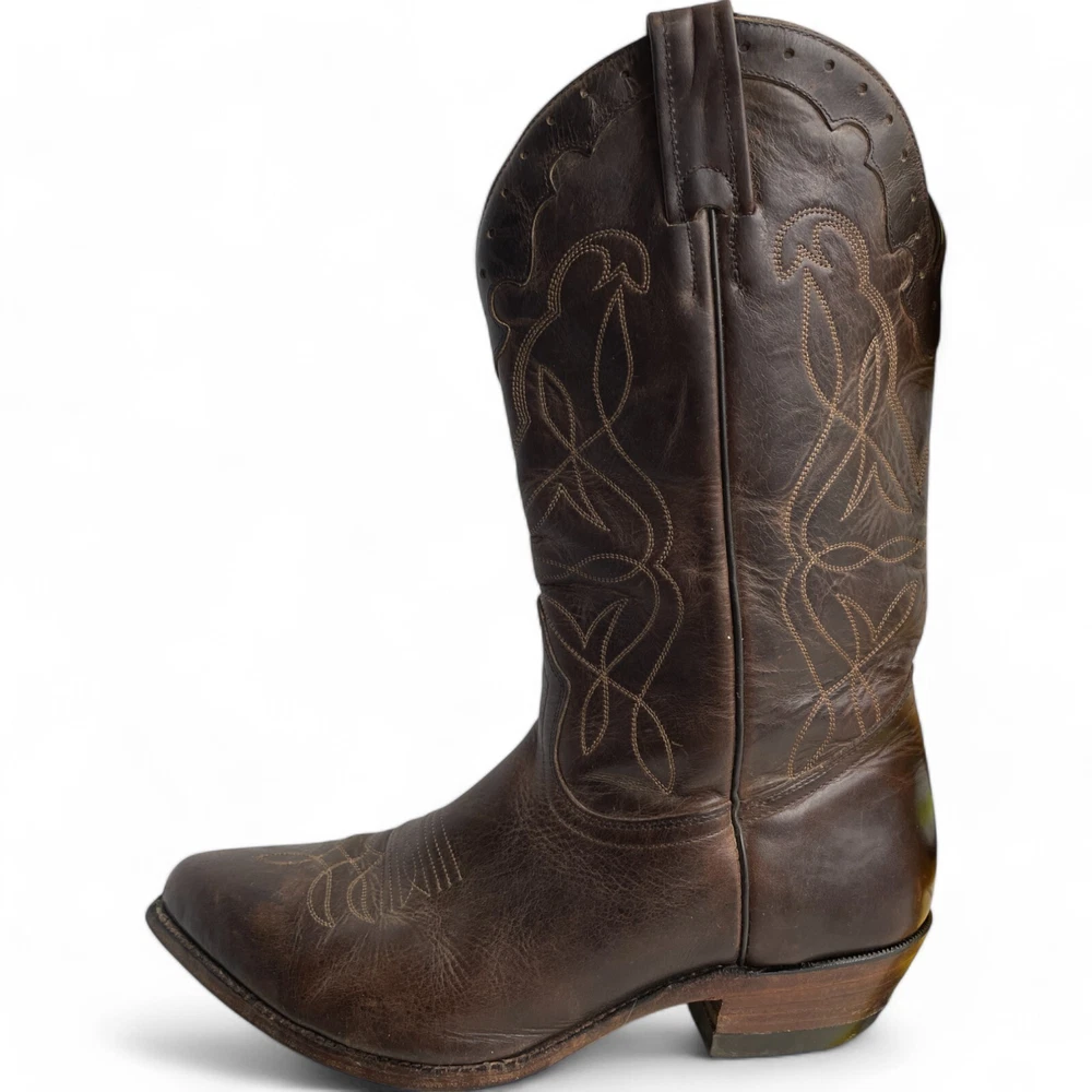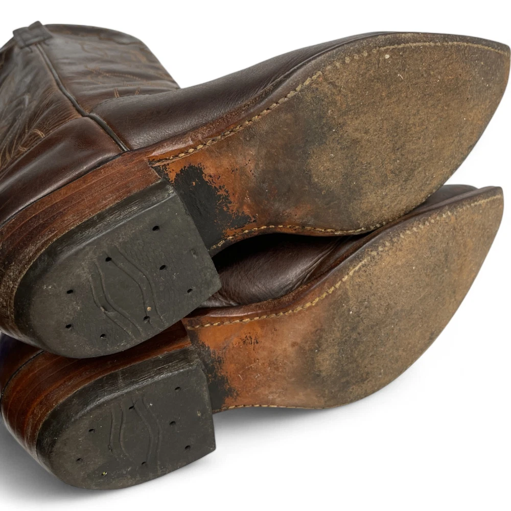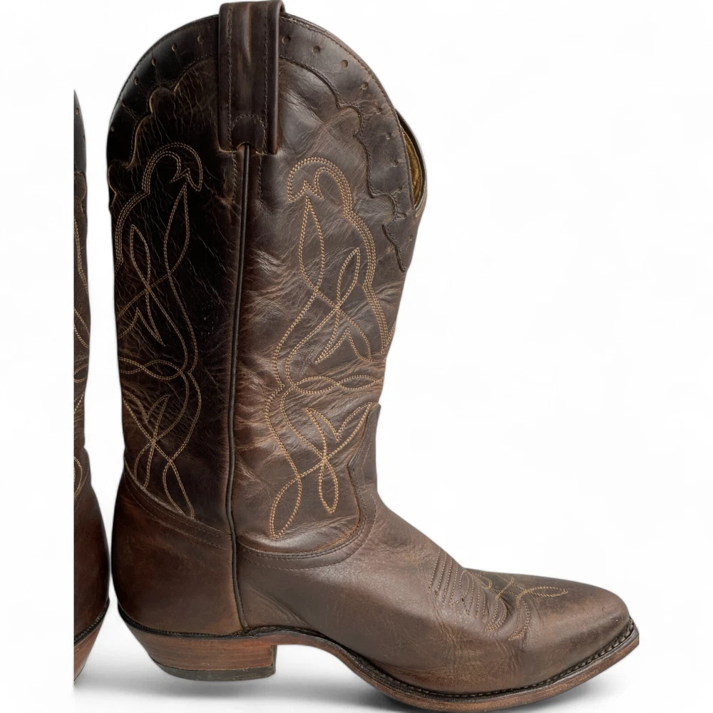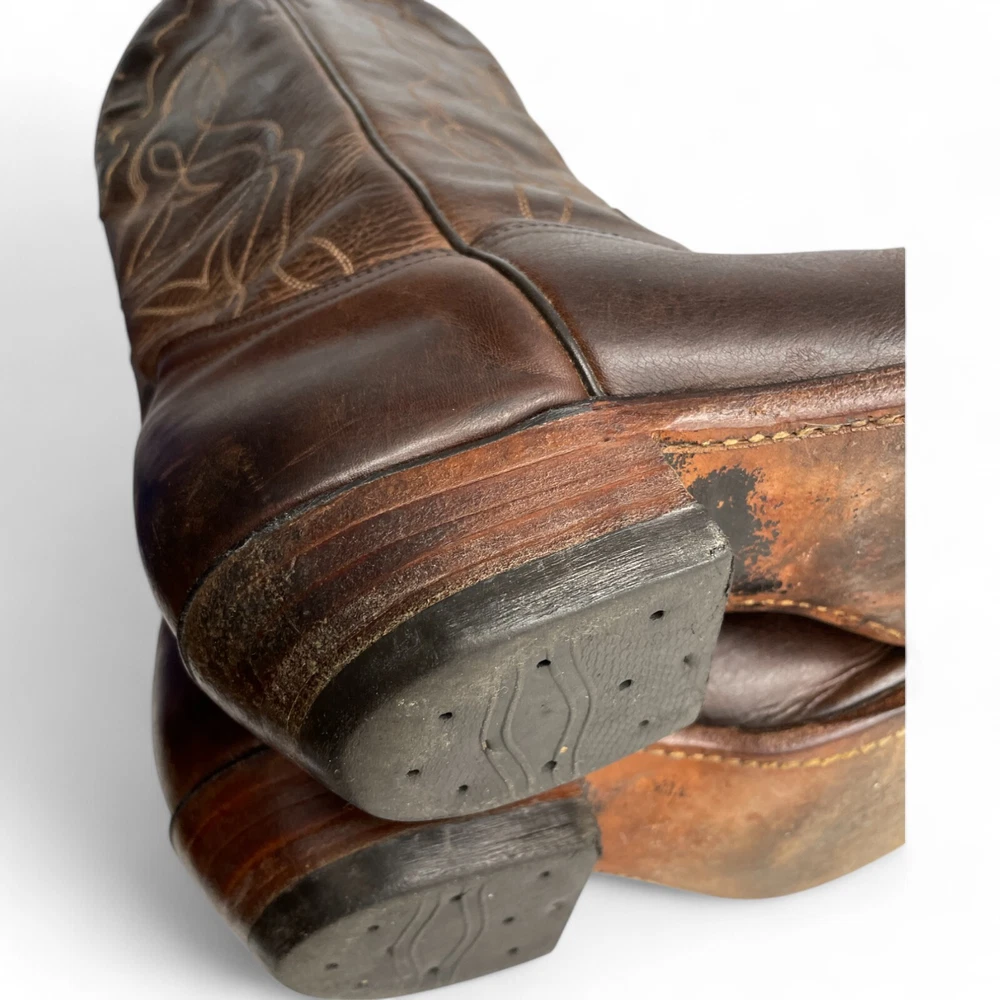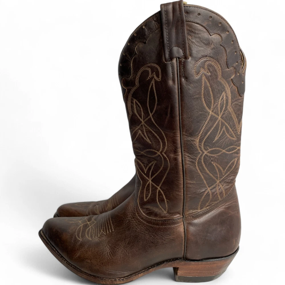 Boulet Leather Western Boots Brown Cowboy Embroidered Men's 9.5 EE Wide