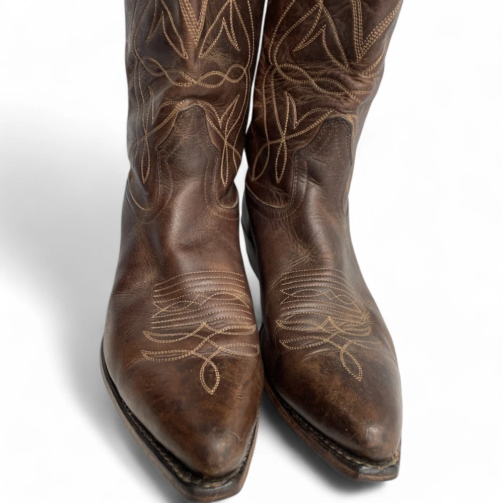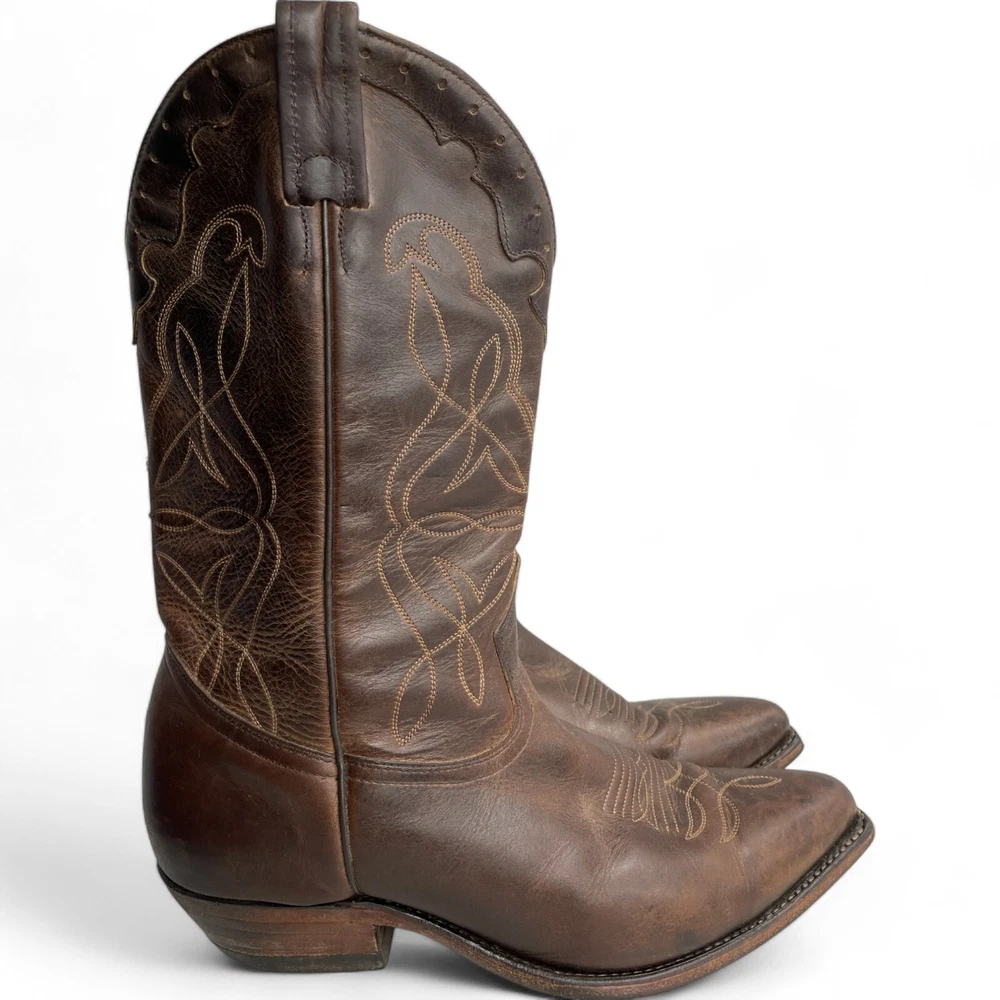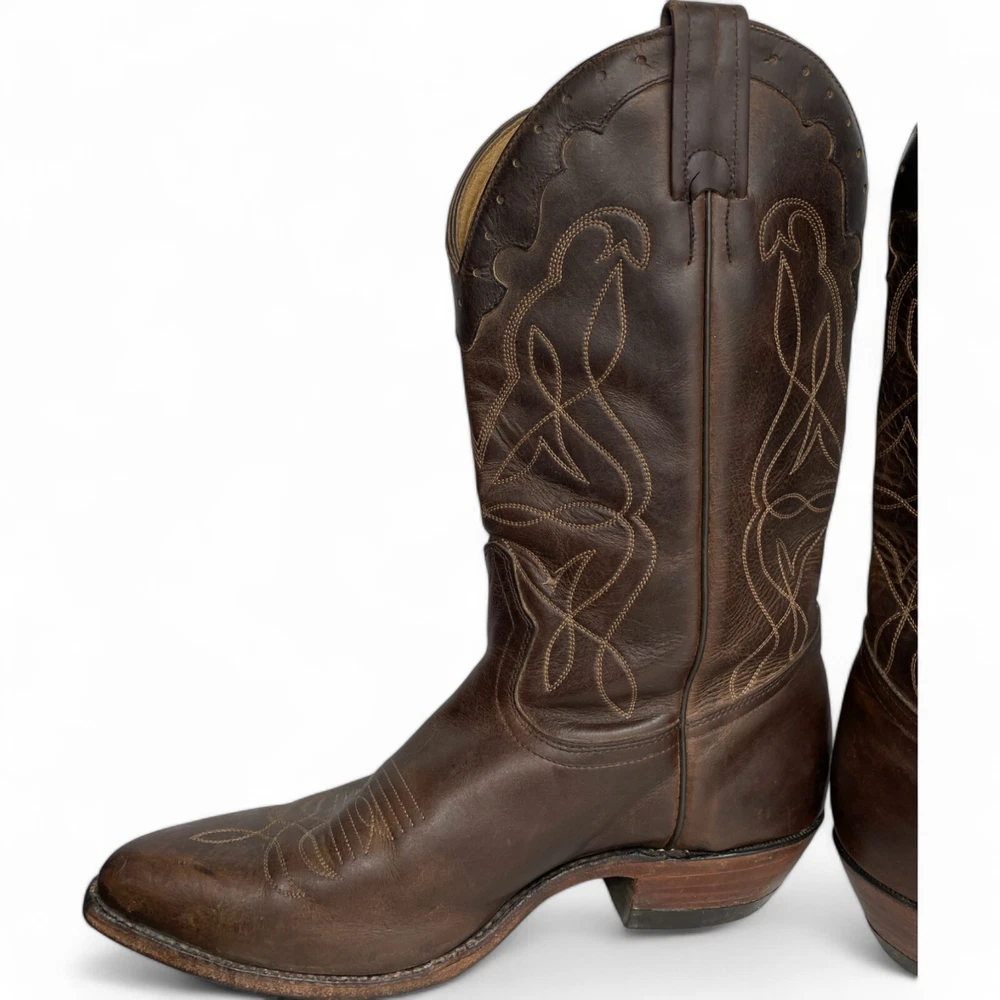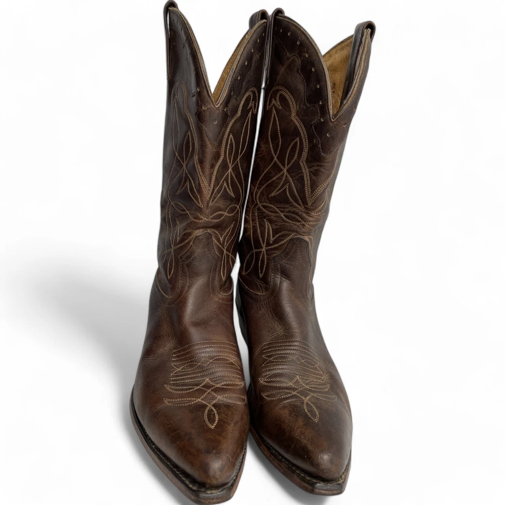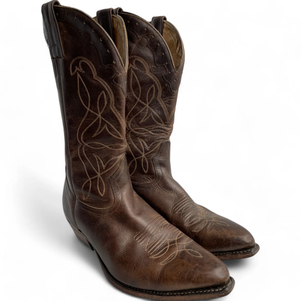 Boulet Leather Western Boots Brown Cowboy Embroidered Men's 9.5 EE Wide