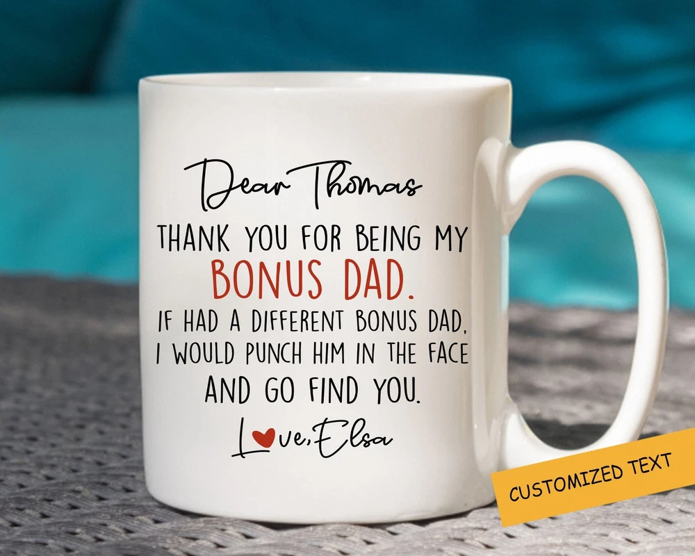 Bous Dad Personalized Mug Fathers Day Gift Custom Dad In Law Mug Thank You For Product Details.. This high quality 11oz. ceramic white mug has a premium hard coat that provides crisp and vibrant color reproduction sure to last for years. Perfect for all hot & cold beverages. The highest quality printing possible is used. It will never fade no matter how many times you wash it. Material: 100% Ceramic. Print both sides. Dishwasher and Microwave Safe. High Gloss + Premium White Finish. Printed in the U.S.A. Personalized & Custom. We support personalized and custom mug to add custom, when placing an order, you can add notes to the "order note" in shipping address section. Also you can contact us directly via message. Shipping Info. Ready to ship in 1 to 2 business days, All products are made-to-order and proudly printed in the United States. Shipped by USPS and DHL, You will receive your order in 5-7 days. Replace & Refund. All products are defective during shipping broken, chipped will be replaced free of charge. You are not satisfied with the product, we will refund 100% money to you. If any other issues arise, please do not hesitate to message, we would be more than happy to assist you.
