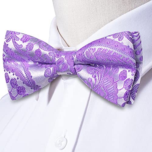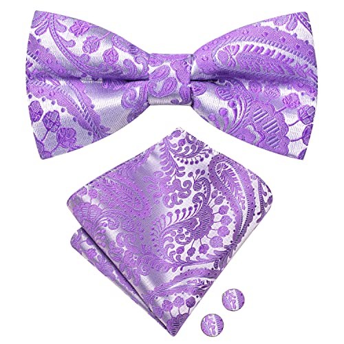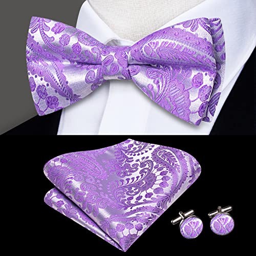Men's Pre-Tied Bow Tie Set with Pink Paisley Pocket Square & Cufflinks
