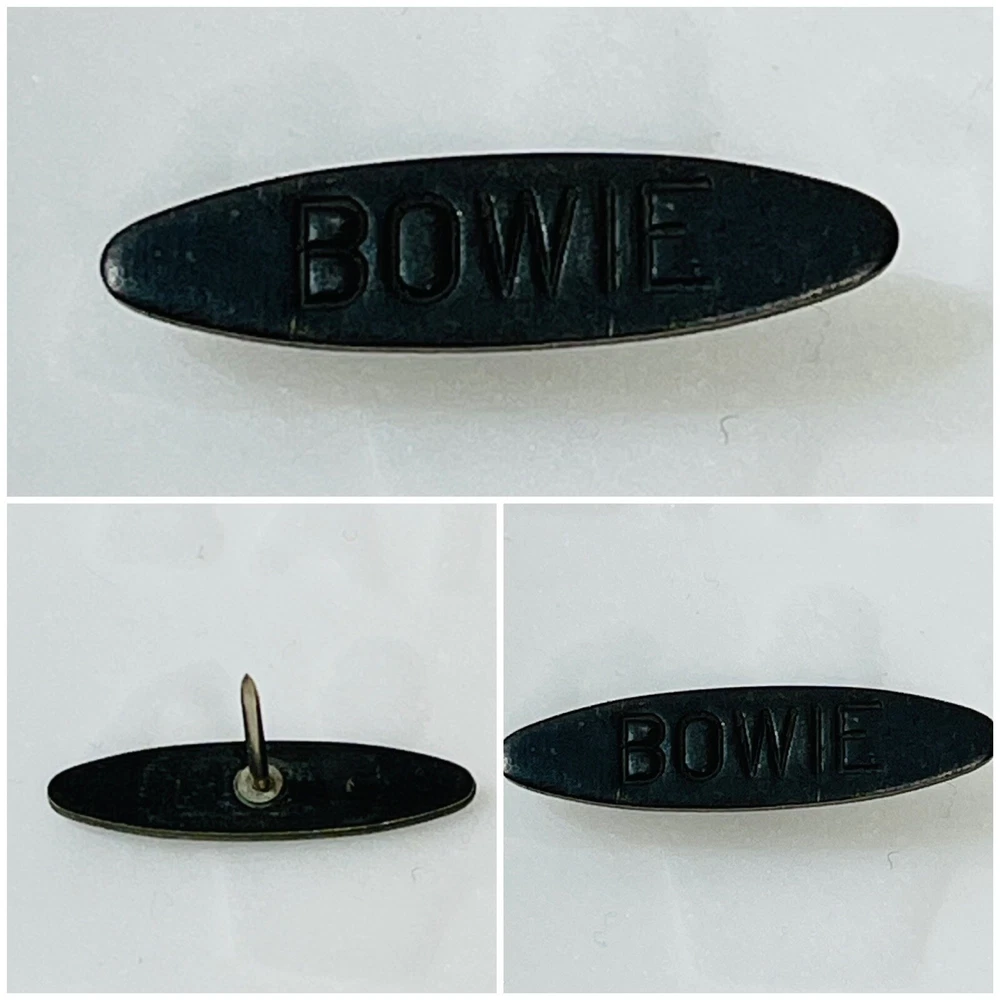 The Bowie emblem measures 7/8” long x 1/4“ wide with the tack measuring 1/2 inch. They are new old stock with some. Wear present, I have available and can be bundled for the same shipping cost .