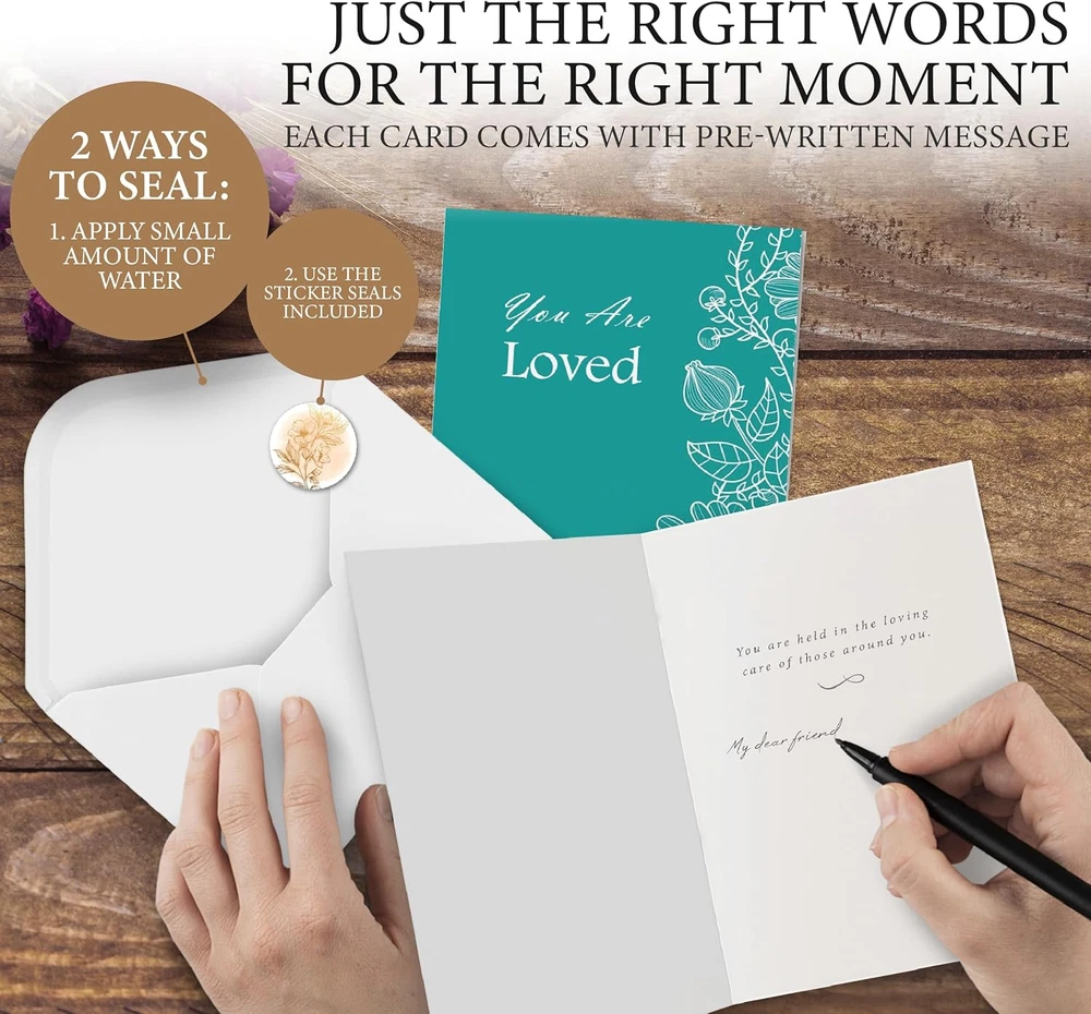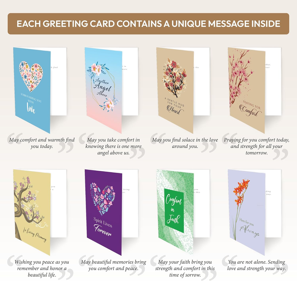 Fast Shipping On All Items 30 Days Money Guarantee Customer Support Excellent Service 100% Satisfaction Satisfaction Guaranteed Box of Sympathy Cards with Envelopes, 24 Pack Condolence Card for Bereavement, L Specification Item model number OZ158B Number of Items 24 Color Unique Manufacturer Part Number OZ158B Item Weight 11.2 ounces Pre-printed Blank Inside Product Dimensions 6 x 4 x 0.04 inches Size 4 X 6 Inches 4.0 inches x 6.0 inches x 0.04 inches. Weight: 11.2 oz Item Description Meaningful Messages for Every Loss: With sentiments like “Thinking of You,” “A Gentle Hug for Your Heart,” and “Spirit Lives Forever,” each card offers a different way to express heartfelt sympathy and support. Floral Artwork That Comforts: The set features 24 unique designs with soft florals, elegant leaves, and gentle nature themes, each one carefully created to convey peace and beauty during difficult moments. Complete Sympathy Set with Extras: Includes 24 cards, matching white envelopes, and round floral sealing stickers, so every message arrives polished and ready to send with care. For Any Relationship or Occasion: Whether you're supporting a friend, family member, colleague, or neighbor, these cards are suitable for funerals, memorials, pet loss, miscarriage, or quiet expressions of comfort. Keepsake Storage Box Included: The floral-themed storage box keeps your cards, envelopes, and stickers neatly organized and protected, always ready for when someone needs your support the most. Product description 1 Floral 2 Monochrome 3 Unique 1 Faith-Inspired Comfort 2 Keepsake-Worthy Messages 3 Elegant Storage Box Heartfelt Greetings for Every Life Moment Add to Cart Add to Cart Add to Cart Add to Cart Add to Cart Add to Cart Add to Cart Customer Reviews 4.6 out of 5 stars 63 4.6 out of 5 stars 63 4.6 out of 5 stars 63 4.8 out of 5 stars 76 4.7 out of 5 stars 101 4.6 out of 5 stars 32 4.4 out of 5 stars 143 Price $9.99 $ 9 . 99 $12.99 $ 12 . 99 $8.99 $ 8 . 99 $9.99 $ 9 . 99 $9.99 $ 9 . 99 $7.99 $ 7 . 99 $14.99 $ 14 . 99 How many sets? 24 Cards 24 Cards 24 Cards 30 Cards 30 Cards 3 Cards 50 Cards How many unique designs? 6 Designs 24 Designs 6 Designs 10 Designs 5 Designs 3 Designs 10 Designs Size 4" x 6" 4" x 6" 4" x 6" 4" x 6" 4" x 6" 5" x 7" 4 in x 6 in Inside Short Generic Message Short Generic Message Short Generic Message Blank Inside Blank Inside Blank Inside Blank Inside Occasions Loss of loved ones, Grieving Memorial Service or FuneraL Bereavement All Occasions All Occasions Moment of Recovery All Occasions Suitable For Mother, Father, Husband Friends, Coworker Wife, Family Family, Friends, Co-worker Teacher, Business, Men Women, Men Kids, Students, Businesses About us We offer the best prices around on high quality products. Our E-store includes media such as books, movies, music and games while offering electronics, toys, sporting apparel, clothing, tools, general home, garden items and more. Shipping We are always working hard to ensure your package arrives as soon as possible. Please understand that some factors like weather, high postal traffic, and the performance of shipping companies are outside of our control. We offer free shipping to the lower 48 states and ship within 2-3 business days of payment, usually sooner. We do not accept P.O. Boxes. Please provide a physical address. For shipping outside of the continental USA, we only use eBay's Global Shipping Program.The item is shipped to KY and then sent to the rest of the world. International customers are responsible for all duties and taxes. Continue to check out to calculate costs for shipping the item to your country. Messages regarding eBay's Global Shipping Program MUST be directed at eBay EXCLUSIVELY. Returns We offer a 30-Day Return Policy on items in which you are not completely satisfied with. You have the option of a full-refund or an exchange of the item. No returns are available on items shipped outside of the USA Satisfaction We try over very best to make sure every customer is completely satisfied. If there's a problem, message us! We're happy to help. Payment Options Shop With Confidence