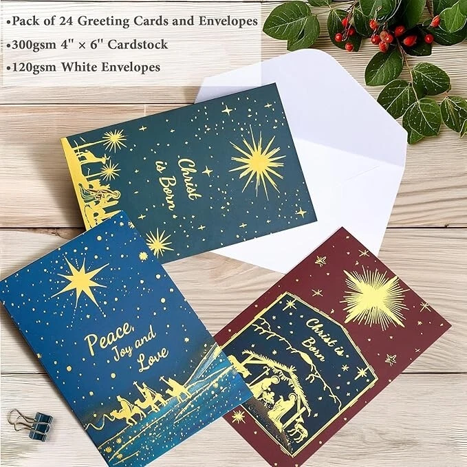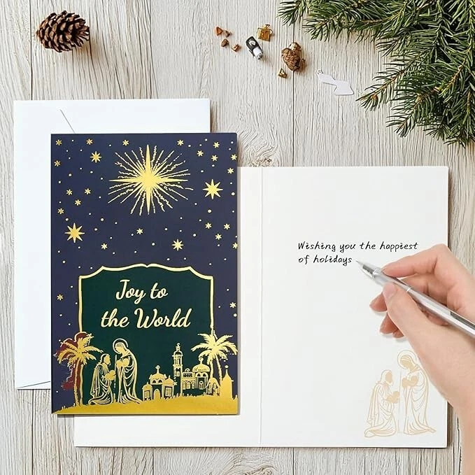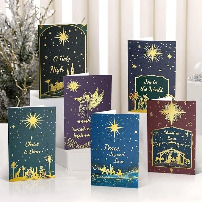 Free eBay listing template designed by dewiso.com Boxed Christmas Cards Assortment, Elegant Icons 6 Designs, 24 Cards Why Use This Product? Share the Spirit of Christmas: These religious Christmas cards provide an excellent way to share the true meaning of the holiday season, reflecting the Nativity and the Christian faith. Personal Touch: The blank inside allows for heartfelt, personalized messages, whether you're sending a note to a friend, loved one, or group. Versatile for Various Uses: Ideal for sending to family, friends, church members, or co-workers, these cards are a perfect way to spread joy and warmth during the holiday season. Great Value: With 24 cards in the pack, you can easily spread festive cheer across many people, all while maintaining high quality at an affordable price. Religious and Thoughtful: The Nativity theme ensures that the cards are not only festive but also remind recipients of the religious significance of Christmas. Desceiption Send heartfelt Christmas wishes with the Boxed Religious Christmas Cards with Envelopes, a beautiful 24-pack of Christian-themed cards featuring assorted Nativity scenes. These cards are blank inside, providing ample space for your personalized messages, making them perfect for sharing the joy of the holiday season with loved ones, friends, and church members. Measuring 4" x 6", each card comes with a white envelope, ready to be sent to spread the true meaning of Christmas. Ideal for bulk purchases or groups, these cards will add a spiritual touch to your holiday greetings. Key Features: Assorted Nativity Designs: Each card in the 24-pack features a beautiful Nativity scene, perfect for reflecting the religious essence of Christmas and sharing the message of hope and joy. Blank Inside: The inside of each card is left blank, allowing you to add your own personal message, scripture, or blessing, making it ideal for both family and group use. High-Quality Cards: Made from premium cardstock, these cards have a sturdy feel and are perfect for conveying meaningful holiday greetings. Comes with White Envelopes: Each card is accompanied by a matching white envelope, making it easy to send your holiday wishes in a polished, professional way. Generous Bulk Pack: This 24-pack offers excellent value, perfect for churches, offices, or individuals who want to share Christian Christmas cards with many people during the season. Perfect Size: Each card measures 4" x 6", providing ample space for your personal message while being easy to mail. Religious and Christian-Focused: These cards are designed with a focus on the spiritual significance of Christmas, making them an ideal choice for religious communities and those who want to share the Christian message of Christmas. These Boxed Religious Christmas Cards with Envelopes are a thoughtful and meaningful way to share the message of Christmas, offering a personal and spiritual touch to your holiday greetings. Contact us Please contact us with any questions or concerns via Ebay messages and we will be happy to help. Payment We accept the payment through :Credit, debit, and gift cards, Apple Pay, Google Pay, PayPal, and PayPal Credit. - Payment must be fulfilled within 4 days after the end of auction. - Please make sure your ebay address is correct. Or not, please correct it before payment. - If you are a big customer, Please contact with us about the item's PRICE and SHIPPING. - Your feedback & suggestion is deeply appreciated, thanks. Shipping 1. Please make sure your address in ebay is correct. 2. We will only follow your address listed in the ebay orders for the shipment. 3. Import duties, taxes and charges are not included in the item price or shipping charges. Returns 1. We can exchange the item within 30 days after you received it if it is defective. 2. Returned item must have all original packaging and accessories. 3. Seller are responsible for the returning shipping costs. Thanks For visiting oakglobal-88