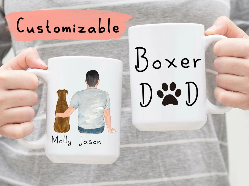 Personalized Boxer Dad Mug Boxer Owner Mug Father's Day Gift Boxer Owner Gift Product Details.. This high quality 11oz. ceramic white mug has a premium hard coat that provides crisp and vibrant color reproduction sure to last for years. Perfect for all hot & cold beverages. The highest quality printing possible is used. It will never fade no matter how many times you wash it. Material: 100% Ceramic. Print both sides. Dishwasher and Microwave Safe. High Gloss + Premium White Finish. Printed in the U.S.A. Personalized & Custom. We support personalized and custom mug to add custom, when placing an order, you can add notes to the "order note" in shipping address section. Also you can contact us directly via message. Shipping Info. Ready to ship in 1 to 2 business days, All products are made-to-order and proudly printed in the United States. Shipped by USPS and DHL, You will receive your order in 5-7 days. Replace & Refund. All products are defective during shipping broken, chipped will be replaced free of charge. You are not satisfied with the product, we will refund 100% money to you. If any other issues arise, please do not hesitate to message, we would be more than happy to assist you.