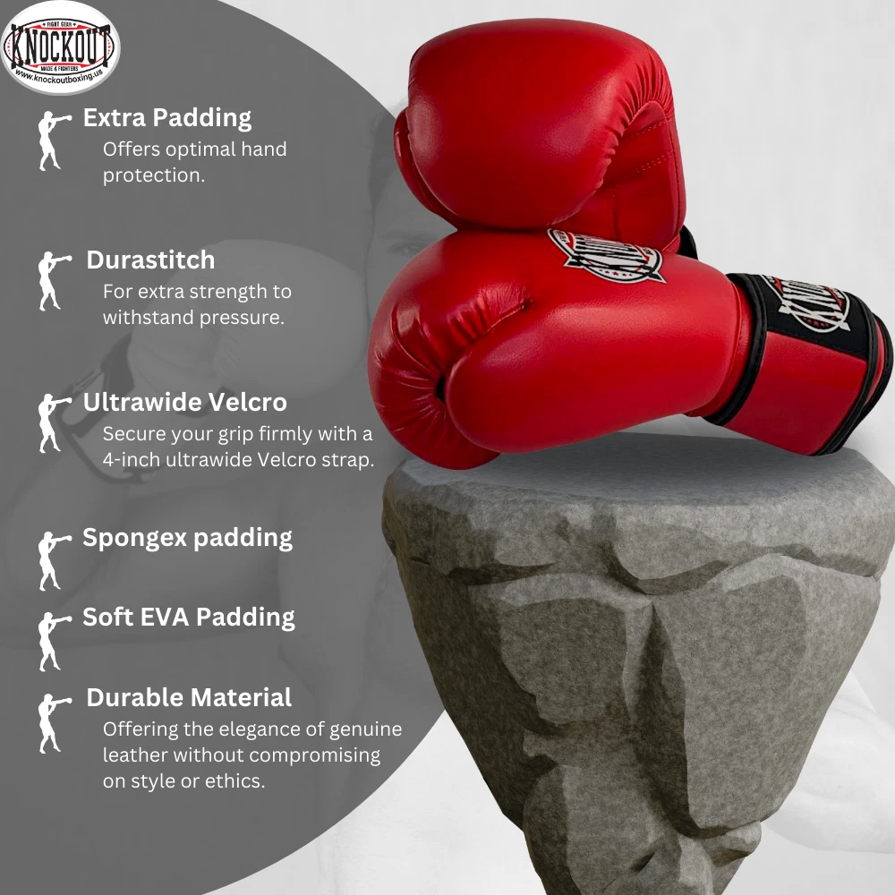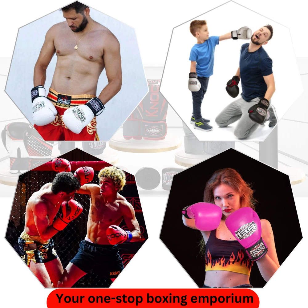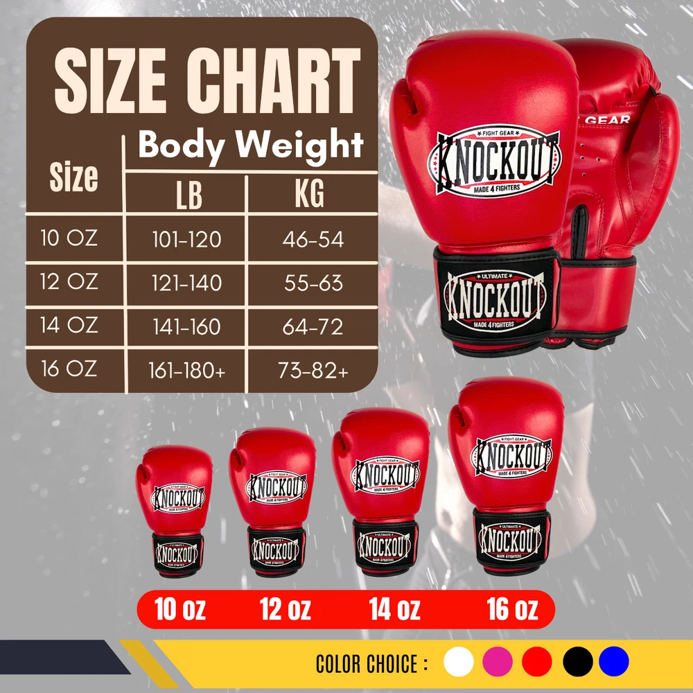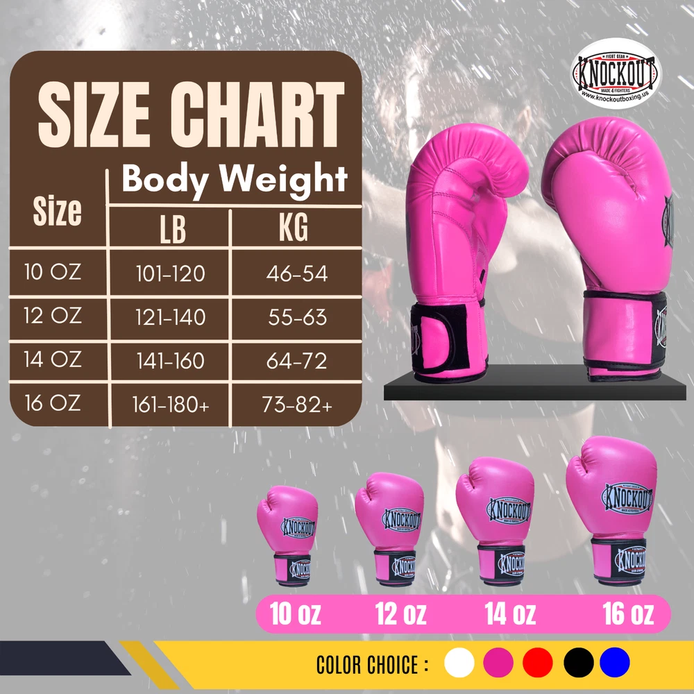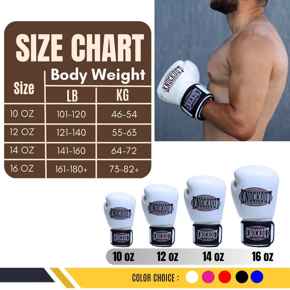 🔰 Reliable One-Stop Shop - Our high-grade Rex Leather boxing gloves women / men are designed for exceptional durability and reliability during Muay Thai, Kickboxing & Other combat sports training. We provide top-notch boxing equipment, customer service and a comprehensive warranty to back our products. Choose our boxing gloves men for long-lasting quality and join our community of passionate combat sports enthusiasts. 🔰 SHOCK ABSORPTION – Force of impact is dissipated across the structure on our guantes de boxeo due to the presence of forced molded extra padding which results in a confident & comfortable training experience for the users. Can be used as kickboxing gloves, heavy bag gloves, punching bag gloves, training boxing gloves and sparring gloves. The Ultra wide wrist support will protect your ankle from any pain or heavy jerks. 🔰 ADJUST FIST POSTURE – The boxing gear for men use Grip Bar in the upper palm area to allow the fighting gloves for boxing to attain the optimal posture for powerful punches during training and competitions. Allows your hands to breathe & ventilates the heavy bag boxing gloves to keep the hands dry. Velcro closing strap is a Quick Touch Fasteners that make it easy to put on or take off the boxing gloves 16 oz. 🔰 IMPROVED ALIGNMENT – Extra Thumb support with the palm area helps create an improved alignment between the fist and thumb which allows the users to punch better. These muay thai gloves keeps your hands snug and protected inside. We took strong measures to put enough padding on our boxing training gloves to absorb all the shocks coming from your heavy punches. Easy To Clean With Wet Towel,With Breathable Mesh To Ventilate Sweat From Inner Side, The airing Can Help You Get Rid Of Annoying Odor. 🔰 FIND YOUR PERFECT FIT : Our adult boxing gloves come in sizes from 10oz boxing gloves to 16oz boxing gloves, ideal for men & women. Choose from 5 vibrant colors pink boxing gloves for women, red boxing gloves, blue, white, black boxing gloves for men to express your style in the ring. We offer 2 year warranty and here to back our product with our physical stores. The other sizes are 12oz boxing gloves for men, 14oz boxing gloves for men. www.knockoutboxing.us