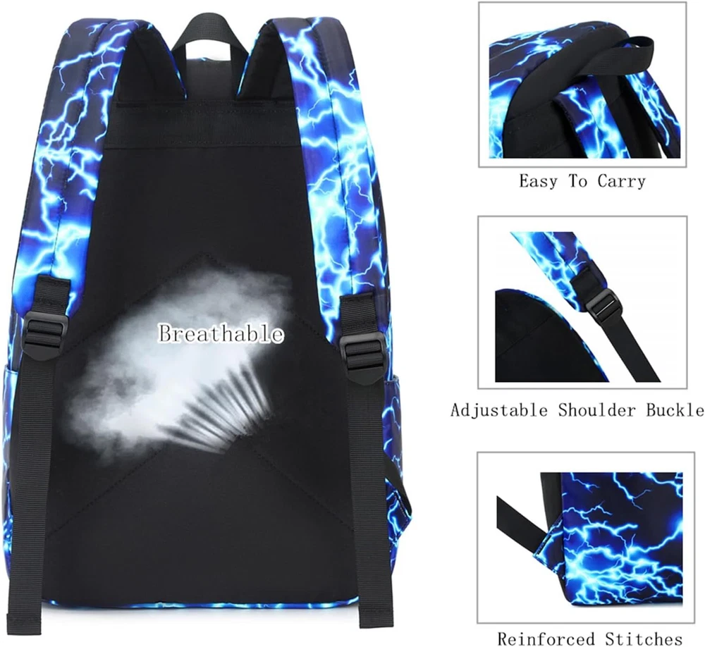 Boy School Backpack Elementary Middle Lightning Bookbag Laptop 1-blue Product Details 1. Lightweight Kids Backpack: This Kids School Bag Is Available In Blue For Men And Women, Black For Boys And Pink For Girls, Suitable For Children Over 7 Years Old And Teenager, Size 43x30x14 Cm (17x12x5.5 Inches). 2. High Quality Laptop Backpack: Unlike Most Brands, This Galaxy Backpack Is Made Of High-Grade Nylon Material, Which Is Waterproof, Scratch-Resistant And Wear-Resistant. Branded Sbs Zippers, Strong Double Stitched Seams, Triangular Stitched Reinforced Shoulder Straps, We Have A Padded Bottom, Reinforced Back Panel And Sturdy Inner Laptop Sleeve For All-Around Protection For Your Tech. 3. High Volume Backpack: Holds All Of Your Essentials And More, Not Only Provides You With Plenty Of Space To Pack All Of Your Laptop, Binders, As Well As Pack Your Book, Cloth, Chargers, Water Bottles, Pens, Highlighters, Or Other Small Stuffs You Daily Needs. 4. Multifunctional School Bag: This Backpack Can Be Used As A Travel Bag, Work Backpack, Weekend Party Bag, Suitable For People Of All Stages. Also Suitable For Travel, Camping, Hiking, Picnics, Summer/Winter Camps And Other Outdoor Sports. Also Makes The Perfect Gift For Younger Generations Or Friends. 5. Our Backpack Lightning Pattern Is A Fabric Soaking Process, My Child Has Been Using This Bag For Two Years, No Fading, No Wrinkles, Each Lightning Pattern Is Different, The Same Batch Of Backpacks Only Have The Same Style But Not The Same, Avoid The Same Style,Please Trust Your Choice.