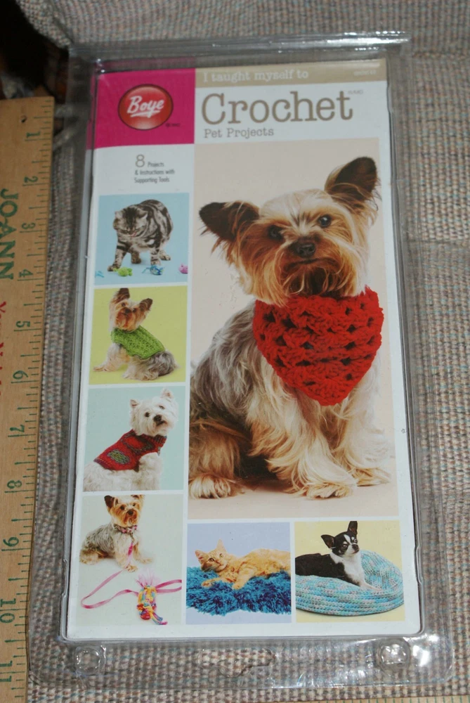 Boye Learn to Crochet Pet Clothing & Accessories Project Kit Keep your furry friend well dressed and comfortable with this pet accessories crochet kit! From dog clothes to a kitty cushion, this crochet pattern collection features eight total projects. Yarn must be purchased separately. Details: 12 piece set Includes 6 crochet hooks Contains 8 projects Suited for all skill levels Contents: 1 crochet pattern booklet 1 yarn needle 4 carabiner stitch markers US size F (3.75 mm) hook US size G (4.25 mm) hook US size H (5 mm) hook US size I (5.25 mm) hook US size J (5.75 mm) hook US size K (6.5 mm) hook sale is for one item smoke free brand new, fast trackable shipping Check out my other items