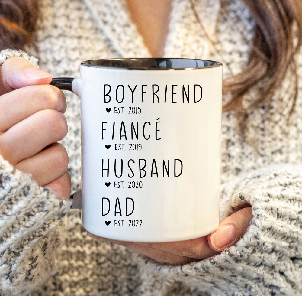 Boyfriend Fiance Husband Dad Mug Pregnancy Announcement Pregnancy Reveal First Product Details.. This high quality 11oz. ceramic white mug has a premium hard coat that provides crisp and vibrant color reproduction sure to last for years. Perfect for all hot & cold beverages. The highest quality printing possible is used. It will never fade no matter how many times you wash it. Material: 100% Ceramic. Print both sides. Dishwasher and Microwave Safe. High Gloss + Premium White Finish. Printed in the U.S.A. Personalized & Custom. We support personalized and custom mug to add custom, when placing an order, you can add notes to the "order note" in shipping address section. Also you can contact us directly via message. Shipping Info. Ready to ship in 1 to 2 business days, All products are made-to-order and proudly printed in the United States. Shipped by USPS and DHL, You will receive your order in 5-7 days. Replace & Refund. All products are defective during shipping broken, chipped will be replaced free of charge. You are not satisfied with the product, we will refund 100% money to you. If any other issues arise, please do not hesitate to message, we would be more than happy to assist you.