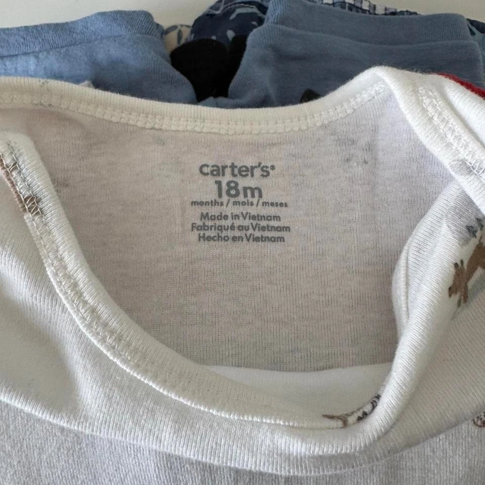 9-piece boys clothing bundle in size 18 months. Includes: 3 Long Sleeve One-Piece Bodysuits Adidas Long Sleeve Top + Pants One piece 1 Long Sleeve Sleep Shirt (NWOT) 1 Blue Long Sleeve Pullover 1 Pair Blue Patterned Shorts 1 Pair Blue Pajama Shorts (NWOT) 1 Pair Black Daytime Shorts Brands: Carters, Old Navy, Adidas & more Condition: Mix of NWOT and gently loved Size: 18 Months Perfect for year-round wear—great value bundle! Keywords: boys 18m clothing lot, Adidas baby outfit, Carters bodysuits, baby boy bundle, toddler clothes set Hashtags: #BabyBoyClothes #CartersBaby #OldNavyKids #ToddlerStyle #ClothingBundle