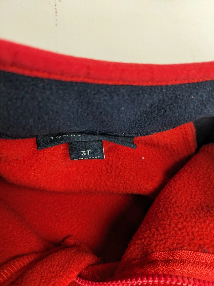 Character: Boy Type: Sweatshirt UPC: Does not apply Sleeve Length: Long Sleeve Department: Boys Features: Hooded Theme: Colorful Seller Notes: “Pre-owned item, used condition showing minor signs of wear and use.” gtin13: Does not apply Brand: Tommy Hilfiger Occasion: Casual Closure: Zip Color: Multicolor Personalize: No Garment Care: Machine Washable Fit: Classic Neckline: Round Neck Style: Full Zip Fabric Type: Fleece Vintage: No Pattern: Solid Country/Region of Manufacture: Unknown Size: 3T MPN: 4545 California Prop 65 Warning: NA