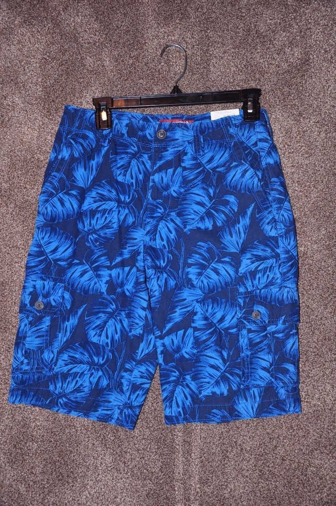 New Chino Cotton Cargo shorts made in light/medium/dark blue (Dockside Blue) with solid waistband, front zipper, two front side pockets, two lower side leg cargo pockets, and two back button-down pockets, with flaps. Great eBay buy!!! MEASUREMENT S Waist: 30" around Hips: 37" around from one side seam Inseam: 11 1/2" Outseam: 21" from top of the waistband to bottom of the leg hemline Rise: 10" from crotch to top of the front waistband