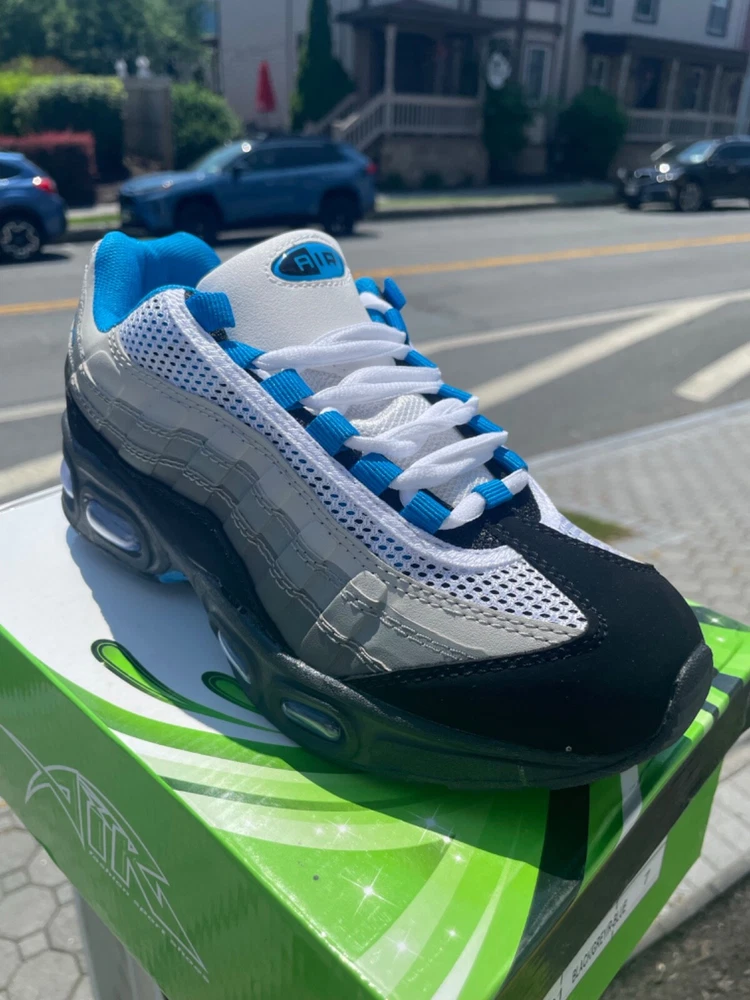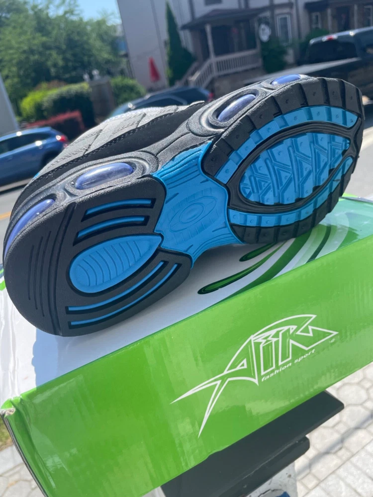 Elevate your athletic performance with these AIR sneakers in black, gray, and royal blue. Designed for boys, these sneakers feature a lace-up closure for a secure fit and a mid-top shoe shaft style for added support. The rubber outsole provides traction for a variety of activities, including walking, CrossFit, basketball, and running. Featuring a standard shoe width, these sneakers come in various US shoe sizes of your choice, making it perfect for any foot size. The sneaker's style code is A001, making it easy to identify and flaunt. These sneakers are perfect for sports enthusiasts who want to make a statement with their footwear.