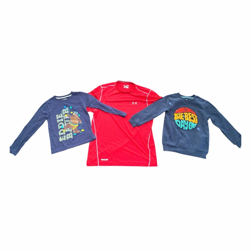 Large boys’ clothing bundle featuring 18 total pieces in mixed sizes ranging from 5/6, 7/8, big kid, and youth/teen. This lot includes a versatile mix of hoodies, long-sleeve tops, athletic shirts, pants, and a hat, perfect for everyday wear, school, play, or layering. A variety of popular and recognizable brands are included (see photos for brand tags and details). Styles range from athletic and graphic tees to cozy hoodies and casual basics. ⸻ What’s Included ✔️ Hoodies & sweatshirts ✔️ Long-sleeve & short-sleeve tops ✔️ Pants / joggers ✔️ Hat ✔️ Mix of athletic & casual wear Total pieces: 18 Sizes: 5/6, 7/8, Big Kid, Youth/Teen (mixed lot) ⸻ Condition • Mixed condition bundle • Some items show light staining or signs of wear (normal for kids’ clothing) • Several pieces are in very good condition, and some are brand new with tags • No major damage noted (no rips or holes observed) Please review photos closely, as they are part of the description. ⸻ Perfect For • Budget-friendly wardrobe refresh • Resellers / bundle buyers • School & everyday play • Seasonal layering ⸻ Important Notes • Sold as a lot only (no splitting) • Items are pre-owned unless noted new with tags • Sold as-is • Smoke-free home