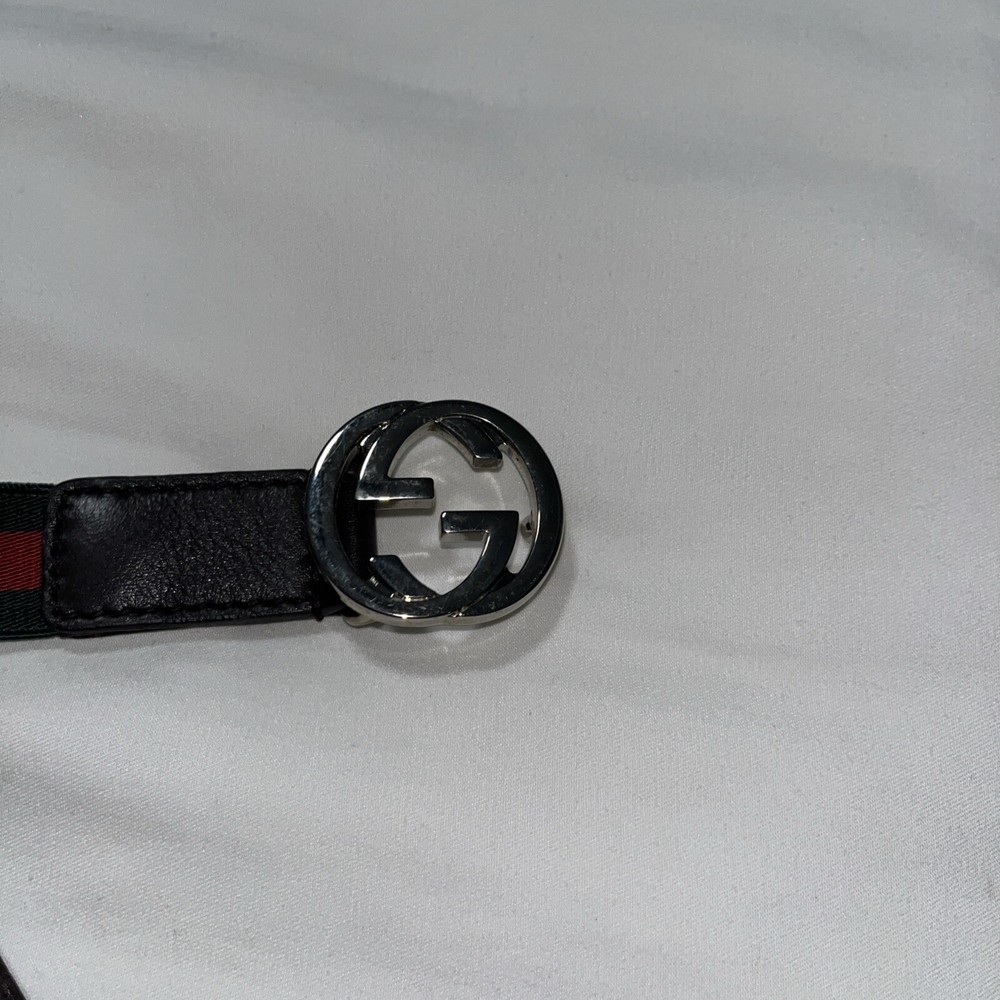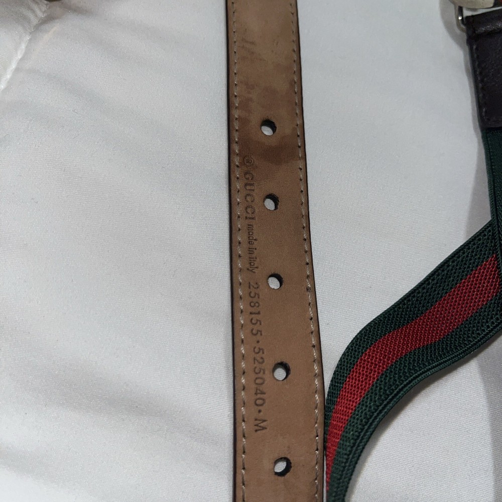The product is a Gucci Baby belt designed for boys in size M. It features a green and red color scheme, giving it a vibrant and stylish look. This belt is designed to add a touch of luxury and sophistication to a teen boy's outfit, making it a fashionable accessory for any occasion.
