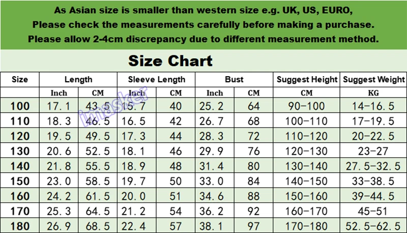 Boys Kids Sequin Suits Jacket Blazer Coat Piano Show Presenter Fancy Dress Cute Set Include : Men Jacket Color:Black, Material:Polyester 100cm: length: 17.1in/43.5cm, sleeve length: 15.7in/40cm, bust: 25.2in/64cm, suggest height: 90-100cm, suggest weight: 14-16.5kg 110cm: length: 18.3in/46.5cm, sleeve length: 16.5in/42cm, bust: 26.7in/68cm, suggest height: 100-110cm, suggest weight: 17-19.5kg 120cm: length: 19.5in/49.5cm, sleeve length: 17.3in/44cm, bust: 28.3in/72cm, suggest height: 110-120cm, suggest weight: 20-22.5kg 130cm: length: 20.6in/52.5cm, sleeve length: 18.1in/46cm, bust: 29.9in/76cm, suggest height: 120-130cm, suggest weight: 23-27kg 140cm: length: 21.8in/55.5cm, sleeve length: 18.9in/48cm, bust: 31.4in/80cm, suggest height: 130-140cm, suggest weight: 27.5-32.5kg 150cm: length: 23in/58.5cm, sleeve length: 19.7in/50cm, bust: 33in/84cm, suggest height: 140-150cm, suggest weight: 33-38.5kg 160cm: length: 24.2in/61.5cm, sleeve length: 20in/51cm, bust: 34.6in/88cm, suggest height: 150-160cm, suggest weight: 39-44.5kg 170cm: length: 25.3in/64.5cm, sleeve length: 21.2in/54cm, bust: 36.2in/92cm, suggest height: 160-170cm, suggest weight: 45-51kg 180cm: length: 26.9in/68.5cm, sleeve length: 22.4in/57cm, bust: 38.1in/97cm, suggest height: 170-180cm, suggest weight: 52.5-62.5kg Description : Friendly Tips: The size is measured by hands, please allow minor error of measurement. Photo color might be a little different from the actual product due to color display of different monitors. Payment 1. We accept PAYPAL only. 2. Payment must be made within 7 days of auction closing (Unpaid dispute will automatically open when item is not paid in 7 days). 3. PLEASE NOTE: SHIPPING&HANDING DOES NOT INCLUDE DUTIES, LOCATL TAXES OR ANY OTHER IMPORTATION FEES. 4. Please list your special requests (color, packages, value of declaration, etc.) in the EBAY NOTES SECTION when you make payment Shipping 1. We Ship to Worldwide 2. We ship your orders within 1-2 business days after the payment cleared. 3. Item shipped from China via china Post Airmail, reach most of the countries within 2 to 4 weeks. 4. Delivery time depends on destination and other factors, it may takes up to 20 days. If you don't receive the item after 25 days,please contact us, we'll investigate and solve the delivery problem. 5. Import duties, taxes, and charges are not included in the item price or shipping cost. These charges are the buyer's responsibility. Please check with your country's customs office to determine what these additional costs will be prior to bidding or buying. Warranty Return 1. Customer satisfaction is our top goal. All products are quality checked. They are new and in good condition when shipped to our customers. If product is defective or damage upon arrival, or wrong product shipped, please contact us immediately. Returns accepted within 14 days of delivery date and item must be in original new condition, not worn or altered in any way with attached tags & wrap. Otherwise deal is final. Return shipping must be paid by buyer. 2. Please contact us first if you have anyproblems/questions/concerns. We will be happy to resolve any issues you may have in a cordial and friendly manner. 3. We appreciate your Positive Feedback, and will do the same in return. PLEASE DO NOT leave negative feedback without first communication with us. Please allow max 24 HOURS for us to respond About Feedback We maintain high standards of excellence and strive for 100% customer satisfaction! Feedback is very important to us. We request that you contact us immediately BEFORE you give us neutral or negative feedback, so that we can satisfactorily address your concerns.It is impossible to address issues if we do not know about them! Contact Us We care about our valued customers, if you have any questions, please feel free to contact us in EBAY MESSAGE, our Customer Service staffs will be very pleasure to reply you in 24 Hours.