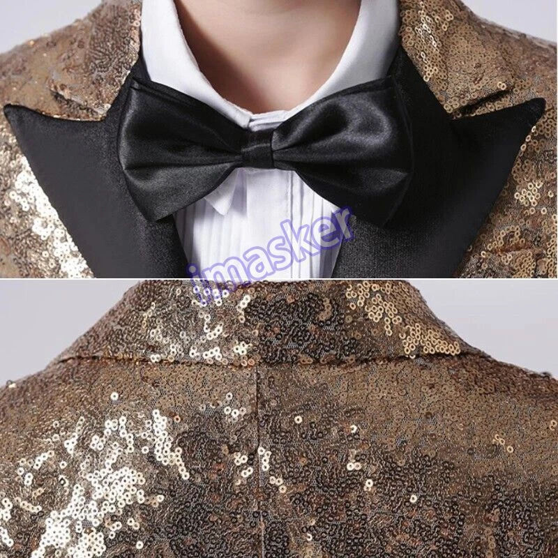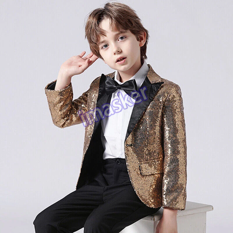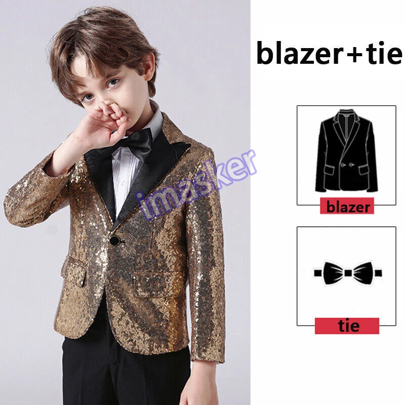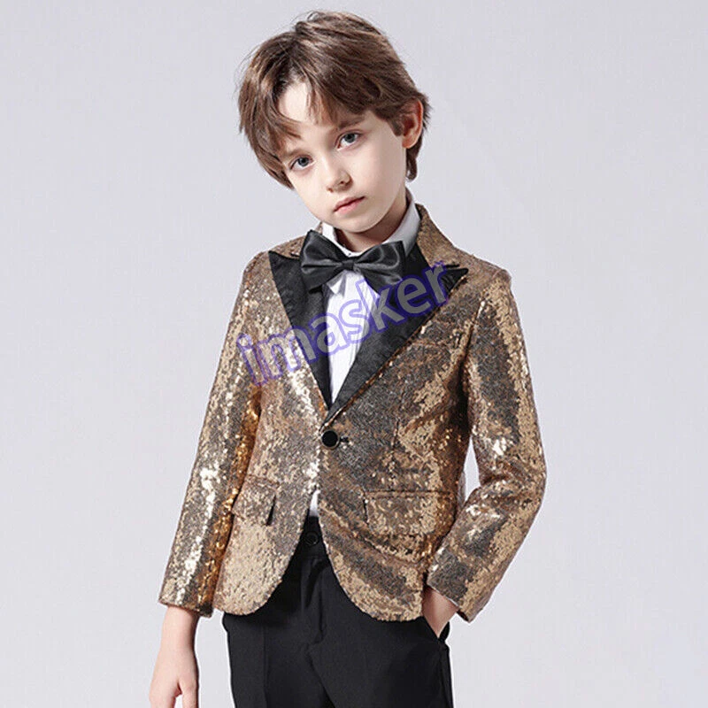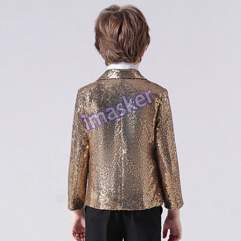Boys Kids Sequin Suits Jacket Blazer Coat Piano Show Presenter Fancy Dress Cute