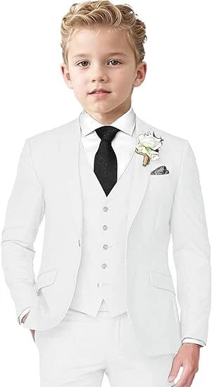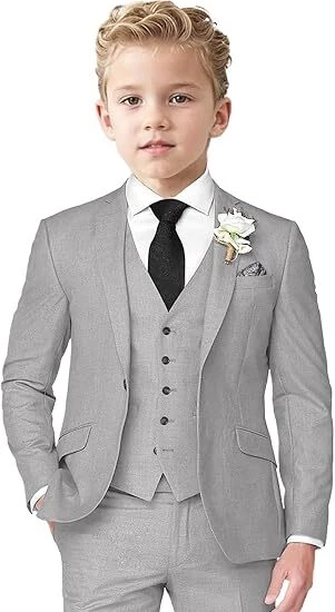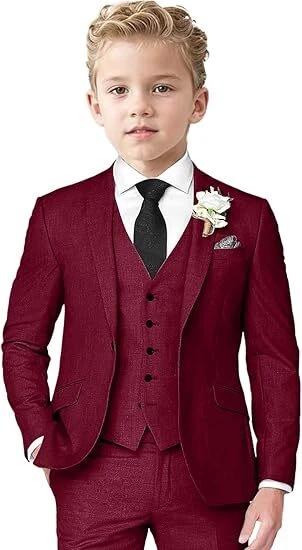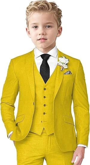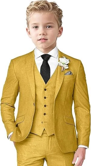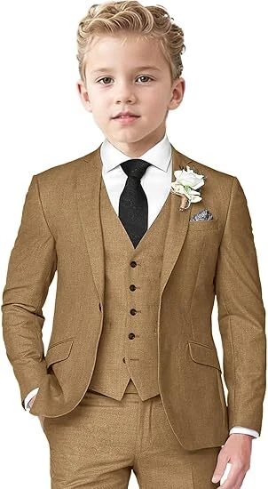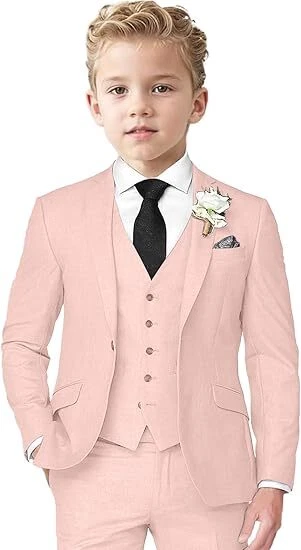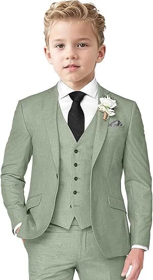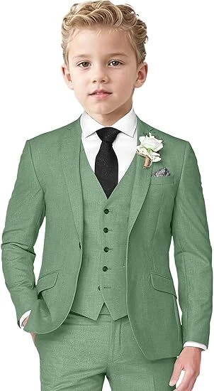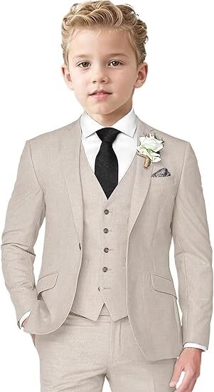 Boys Linen Suit 3 Piece Slim Fit Suits for Kids Formal Tuxedo Suits for Summer