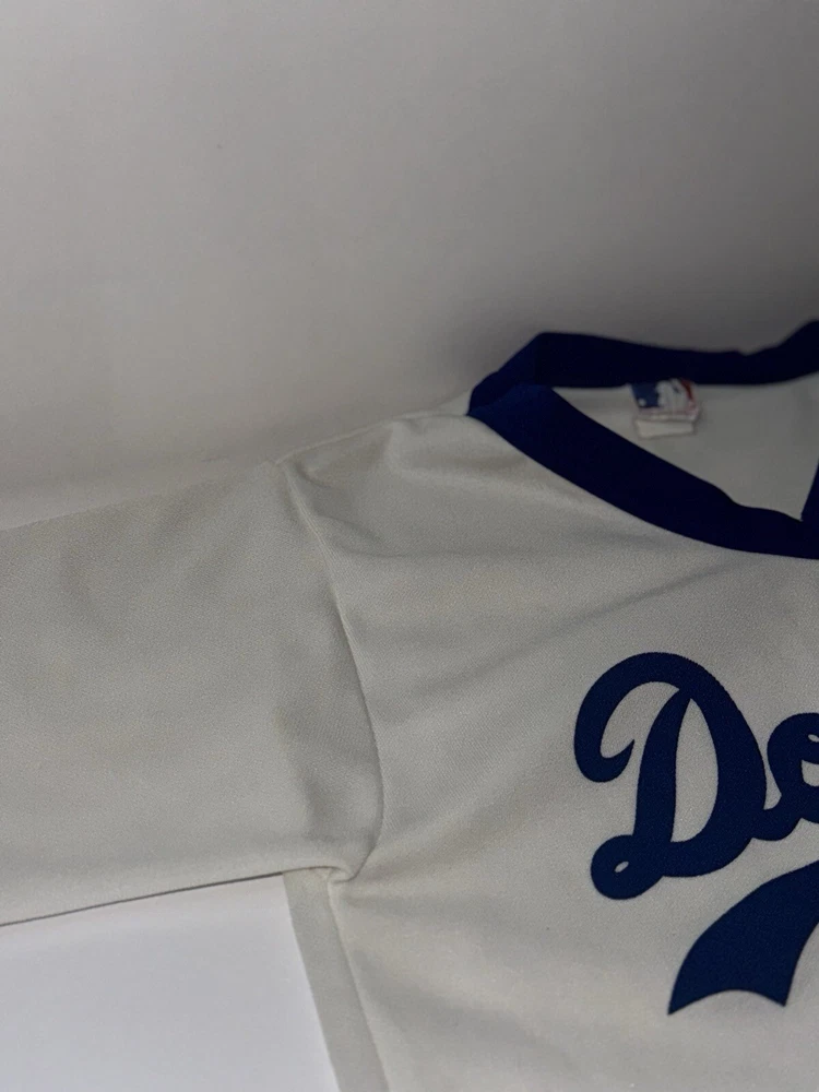Team: Los Angeles Dodgers Brand: Los Angeles Dodgers Color: White Product: Jersey League: Major League (MLB) Size: L Sport: Baseball Gender: Boys