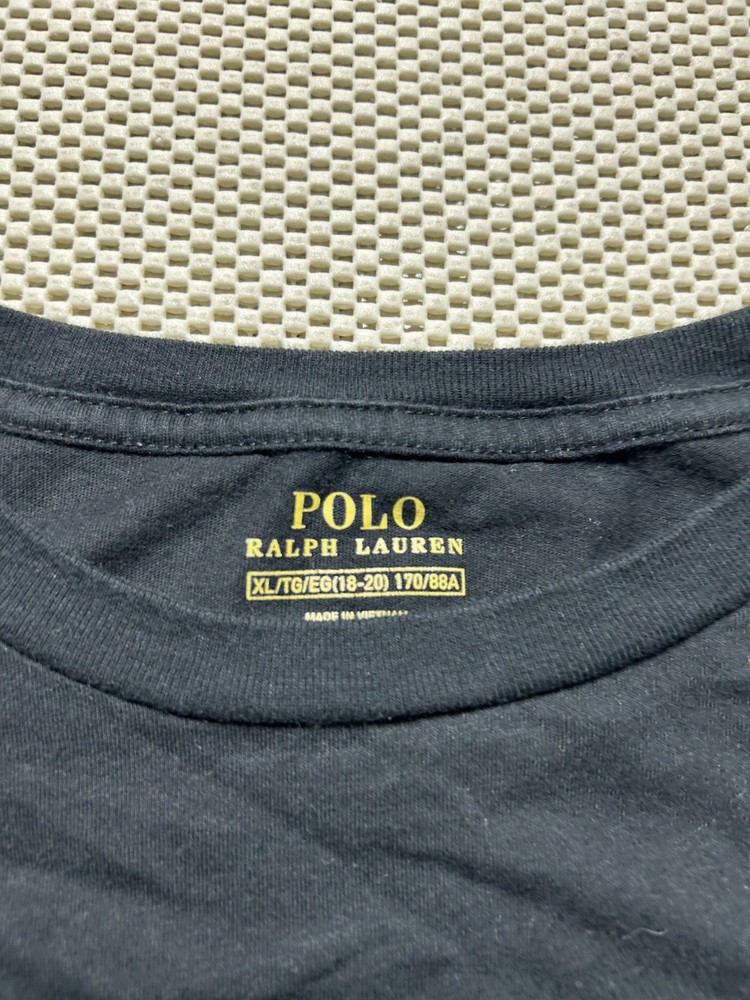 The product is a Boys' POLO RALPH LAUREN Black Polo Bear Long Sleeve T-Shirt in Size Youth XL. This t-shirt features the iconic Polo Ralph Lauren Polo Bear character, making it a stylish and versatile choice for young boys. The black color and long sleeves add a classic touch to the design, perfect for everyday wear or more formal occasions.