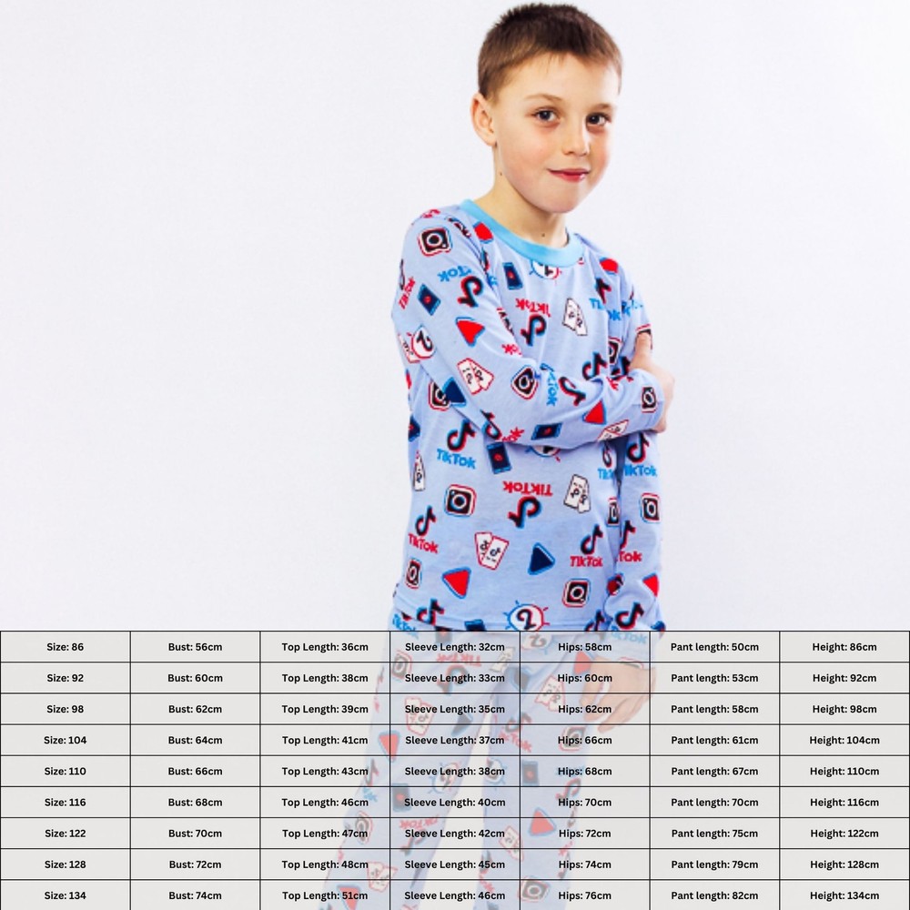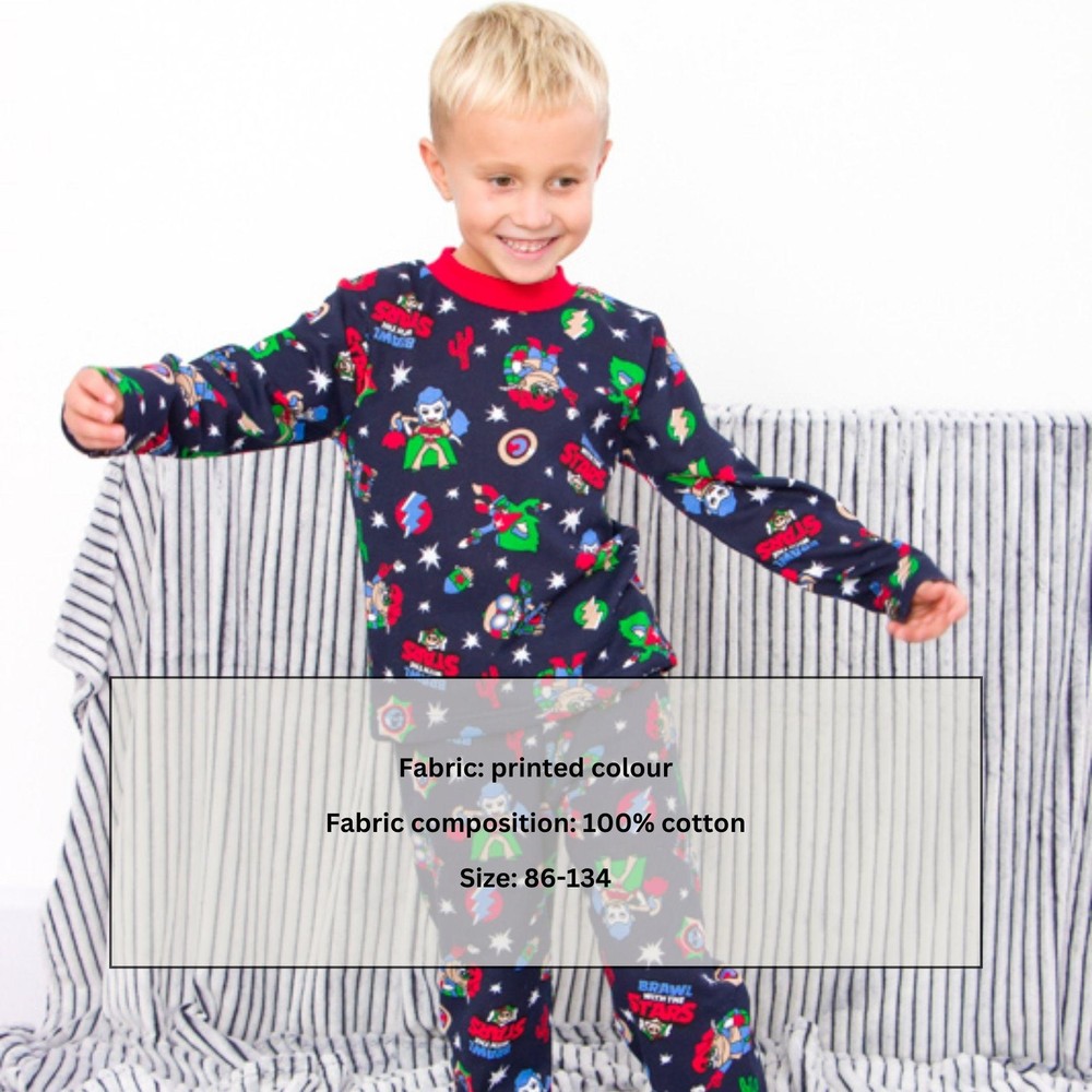Material: Jersey General size: 86-134 Seazon:Any season Pattern:Graphic Print Clothing decoration:no decoration Size: 86, Bust: 56cm, Top Length: 36cm, Sleeve Length: 32cm, Hips: 58cm, Pant length: 50cm, Height: 86cm Size: 92, Bust: 60cm, Top Length: 38cm, Sleeve Length: 33cm, Hips: 60cm, Pant length: 53cm, Height: 92cm Size: 98, Bust: 62cm, Top Length: 39cm, Sleeve Length: 35cm, Hips: 62cm, Pant length: 58cm, Height: 98cm Size: 104, Bust: 64cm, Top Length: 41cm, Sleeve Length: 37cm, Hips: 66cm, Pant length: 61cm, Height: 104cm Size: 110, Bust: 66cm, Top Length: 43cm, Sleeve Length: 38cm, Hips: 68cm, Pant length: 67cm, Height: 110cm Size: 116, Bust: 68cm, Top Length: 46cm, Sleeve Length: 40cm, Hips: 70cm, Pant length: 70cm, Height: 116cm Size: 122, Bust: 70cm, Top Length: 47cm, Sleeve Length: 42cm, Hips: 72cm, Pant length: 75cm, Height: 122cm Size: 128, Bust: 72cm, Top Length: 48cm, Sleeve Length: 45cm, Hips: 74cm, Pant length: 79cm, Height: 128cm Size: 134, Bust: 74cm, Top Length: 51cm, Sleeve Length: 46cm, Hips: 76cm, Pant length: 82cm, Height: 134cm A cozy boys' pajama – the perfect choice for comfortable sleep and relaxation. This pajama combines softness with a stylish design. Made from high-quality materials, it provides a gentle touch and comfort. Choose your favorite design and size for your boy's perfect comfort. This pajama will create a conducive atmosphere for deep sleep and pleasant dreams.