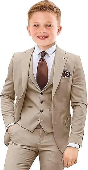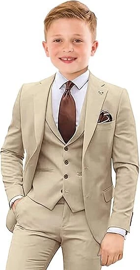 Boys Linen Suit 3 Piece Slim Fit Suits for Kids Formal Tuxedo Suits for Summer