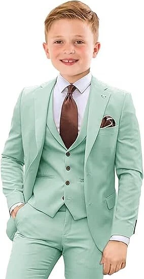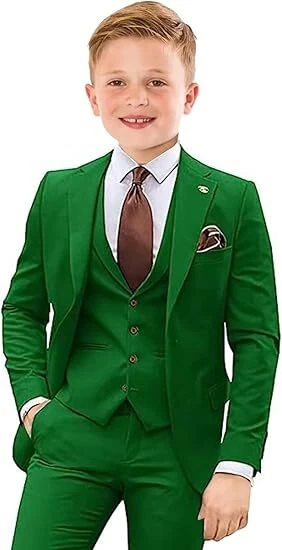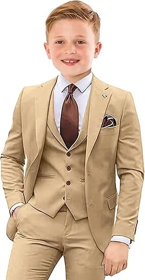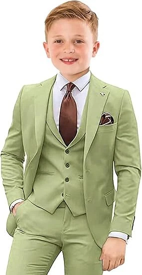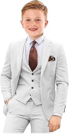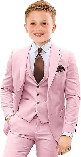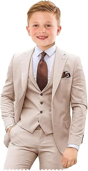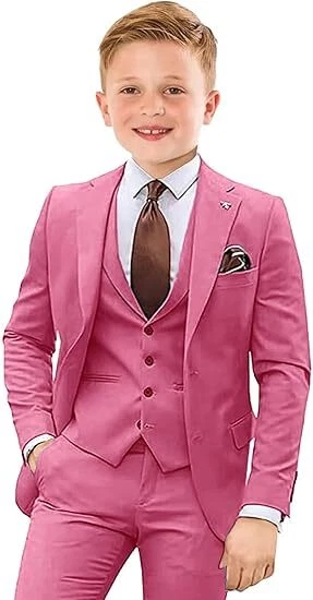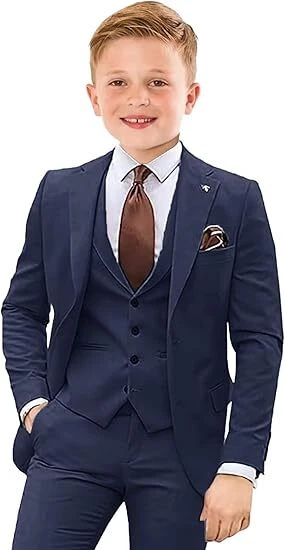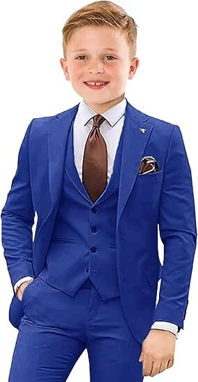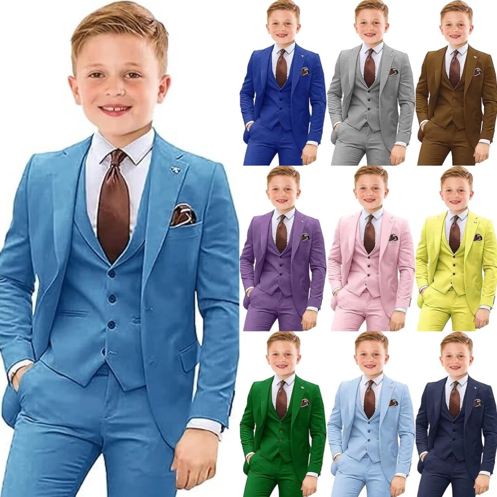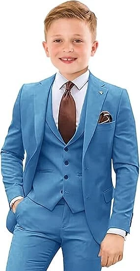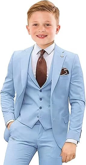 Boys Suit 3 Pcs Slim Fit Kids Tuxedo Suit Formal Wedding Outfit Blazer Vest Set