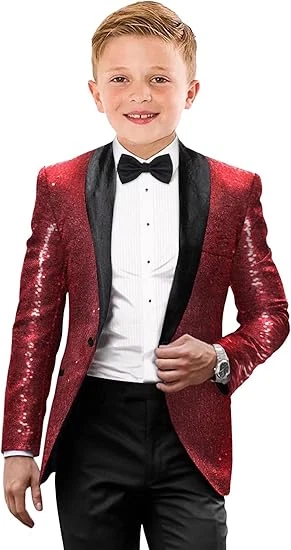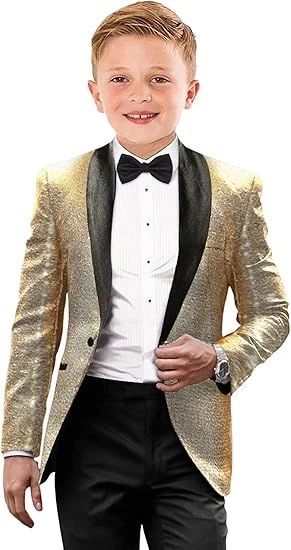 Boys Tuxedo Shiny Sequins Suit for Kids Slim Fit 2 Piece Formal Prom Dress Suit