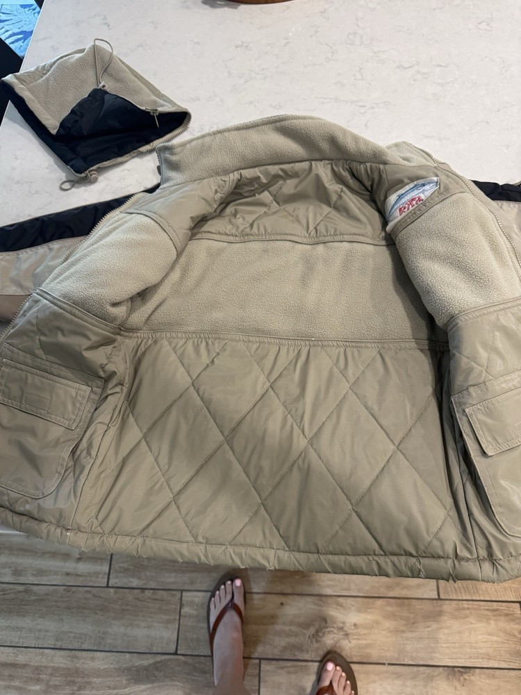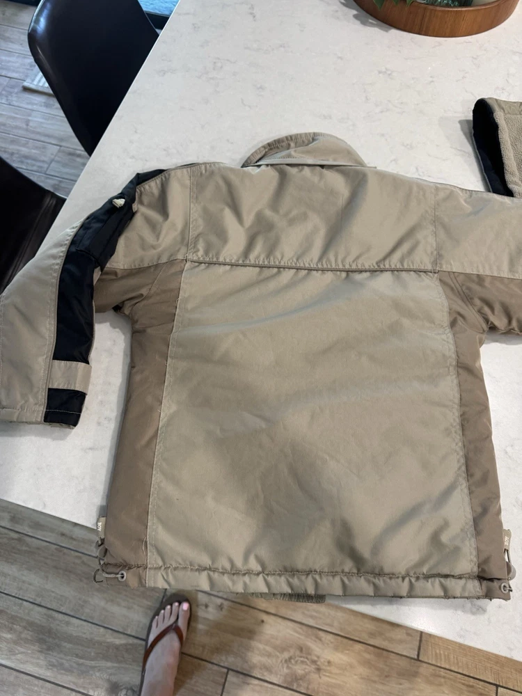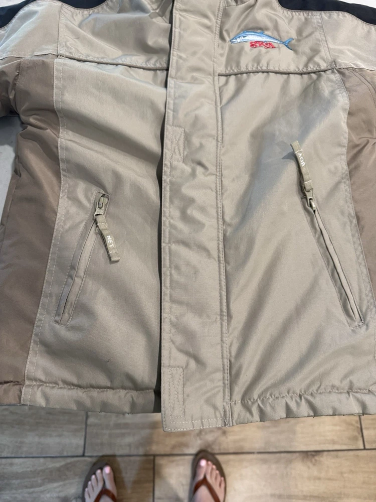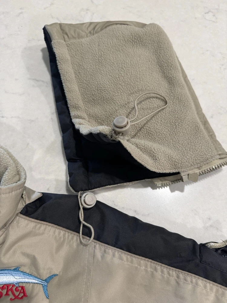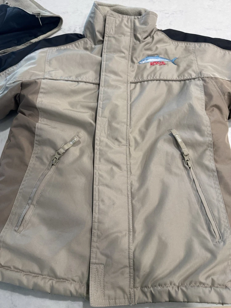 Wrap up your little angler in the Southern Kingfish Association Fishing Jacket, a robust coat tailored for winter's chill. Crafted for both comfort and durability, the jacket features a 100% polyester outer shell that stands up to the elements while keeping your child warm. The tan color offers a versatile look, perfect for any fishing adventure or casual outing. Designed with a practical fishing theme, this basic jacket is sized 8/10 making it a snug and cozy choice for your boy's cold-weather wardrobe. The jacket's functional design ensures ease of movement and convenience, whether he's casting lines or just enjoying the brisk air outdoors.