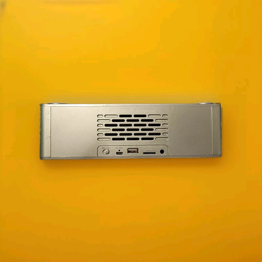 This Boytone BT-88CB clock radio boasts a modern design with a rectangular shape and a silver finish. It features Arabic numerals on a digital display and can be powered by either AC/DC electric or a rechargeable battery. With Bluetooth connectivity, FM radio, and a 3.5mm auxiliary input, this clock radio doubles as a portable wireless speaker for music streaming. Ideal for use in various rooms including the bathroom, kitchen, bedroom, living room, and home office, its features include a USB port, micro SD slot, 24-hour display, 12-hour display, battery backup. The unit has been tested and is in perfect working condition. All units are in clean condition. Scratch resistance film is still on the digital display. Just peel it off, and the display will look brand new! The unit has some small scratches and dents. See pictures. No charging cord or cube included.