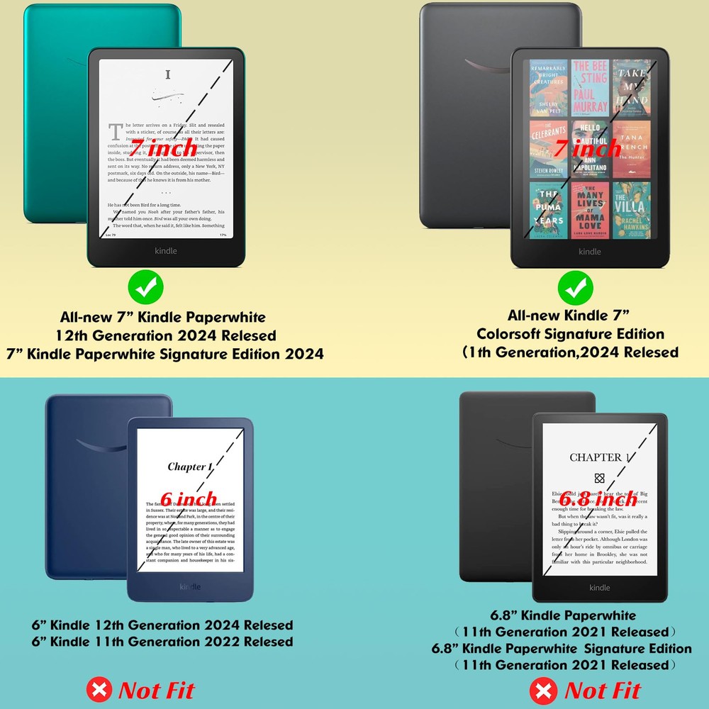 BOZHUORUI Stand Case Compatible with Amazon 7" All-new Kindle Paperwhite 12th Generation/Signature Edition (2024 Released) & Kindle Colorsoft Signature Edition (1st Generation,2024 Released) Color Display eReader. will not fit prior generation Kindle devices. This 7-inch kindle case is designed specifically for the all-new kindle paperwhite 2024 & kindle colorsoft signature edition e-Reader. the kindle paperwhite 2024 or kindle colorsoft cover is made of sturdy and durable faux leather material, which can effectively resist various collisions and scratches in daily use, providing all-round protection for your kindle paperwhite 12th generation or kindle colorsoft ereader.It with a folding stand and elastic hand strap,Support hands-free reading or one handed grip reading,Allow you to reading comfortably. folio book design,opened like a book, also provides comprehensive protection, so you don't have to worry about any accidental damage when reading. In addition, its design is very minimalist, Easy to install,making your kindle device look more stylish. our kindle paperwhite 12th generation & kindle colorsoft signature edition case adds a full layer of protection to your kindle eReader. Whether you're using your 7" kindle paperwhite or kindle colorsoft eReader at home, at the office or on the go, this kindle protective case provides reliable protection for your device. What's in the box:Stand Case for Kindle Paperwhite 12th Generation (2024 Released) or Kindle Colorsoft Signature Edition * 1 1. Only Compatible with Amazon All-new 7" Kindle Paperwhite 12th Generation 2024/7" Paperwhite Signature Edition 2024 & 7" Kindle Colorsoft Signature Edition 2024 eReader (Model.SA568B/SA569P). 2. the 7" kindle colorsoft/12th generation Kindle Paperwhite cover supports automatically wake up or put your device to sleep when you open or close the lid. 3. the 7-inch kindle paperwhite 2024 case with hand straps,Elastic Hand strap allows to read with one hand easier and more comfortable. 4. the kindle paperwhite 12th generation/kindle colorsoft signature edition case with stand,Foldable stand design could set your hands free during your reading. 5. Use of high quality faux leather materials and soft non-scratch microfiber interior. Protect the 12th gen kindle paperwhite/7-inch Signature Edition 2024 or kindle colorsoft e-reader from fingerprints, dirt and scratches. 6. A Premium all-new 7 inch kindle paperwhite accessory,Simple folio design, use like a notebook,convienent to carry, Our kindle paperwhite 7 inch case and covers are available in a variety of colors to meet your individual needs,Makes a great gift for a friend or family member.