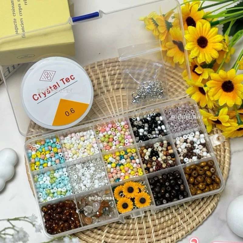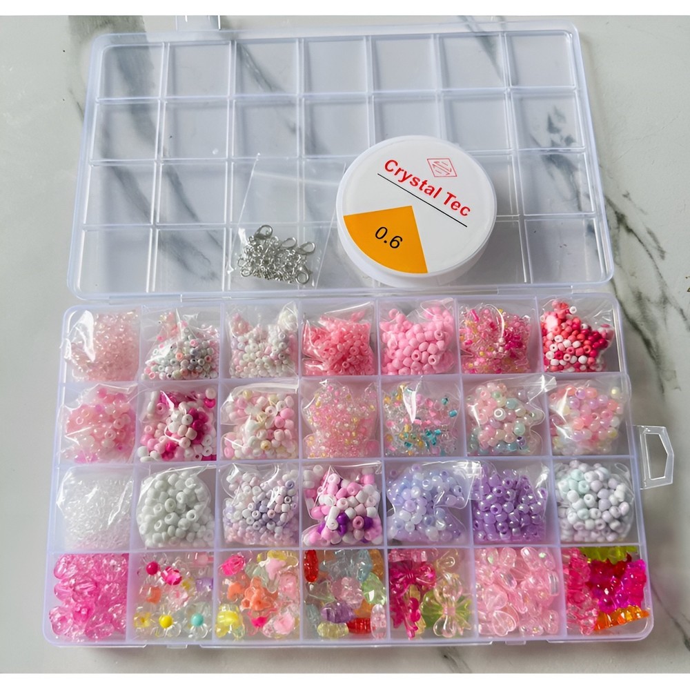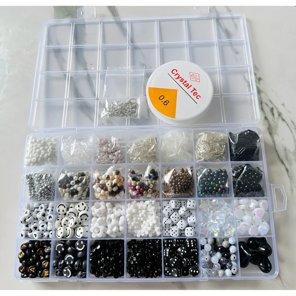 Duo Set Box – Includes Free Elastic Line & 5 Free Accessories – Ready to Ship! You will receive the colors as shown in the photos or Customizable upon request, as shown in the picture Get creative with this complete bead set, perfect for jewelry making or DIY craft projects. This set includes everything you need to start designing right away. What's Included: 1 Duo Set Box 14 Colored Beads (Packaged in individual 10g zip bags for easy pouring) 1 Pendant Tray (14 slots) 1 Elastic Band (Free!) 5 Free Accessories 5 Lobster Clasps (Crab Claws) 5 Chains 10 Stoppers You will receive exactly what you see in the cover first photo. or DIY Wax String Bracelet Kit 9hole – Candle String Set with Beads, Pendants & Box ( shown in the first picture ) or Customizable upon request, as shown in the picture. String Bracelet Kit 10hole set – free DIY elastic string & Box Perfect for beginners and DIY jewelry lovers, this compact set includes everything you need to start creating your own beautiful pieces. What’s Included: 1 S-Set Box with 10 compartments 7 Colored Beads (Packed in individual ziplock bags – 10g each) 1 Pendant with 3 slots 1 DIY Elastic Line Note: Beads are packed in individual zip-lock bags for customers to pour into the box themselves.