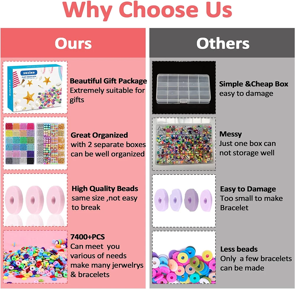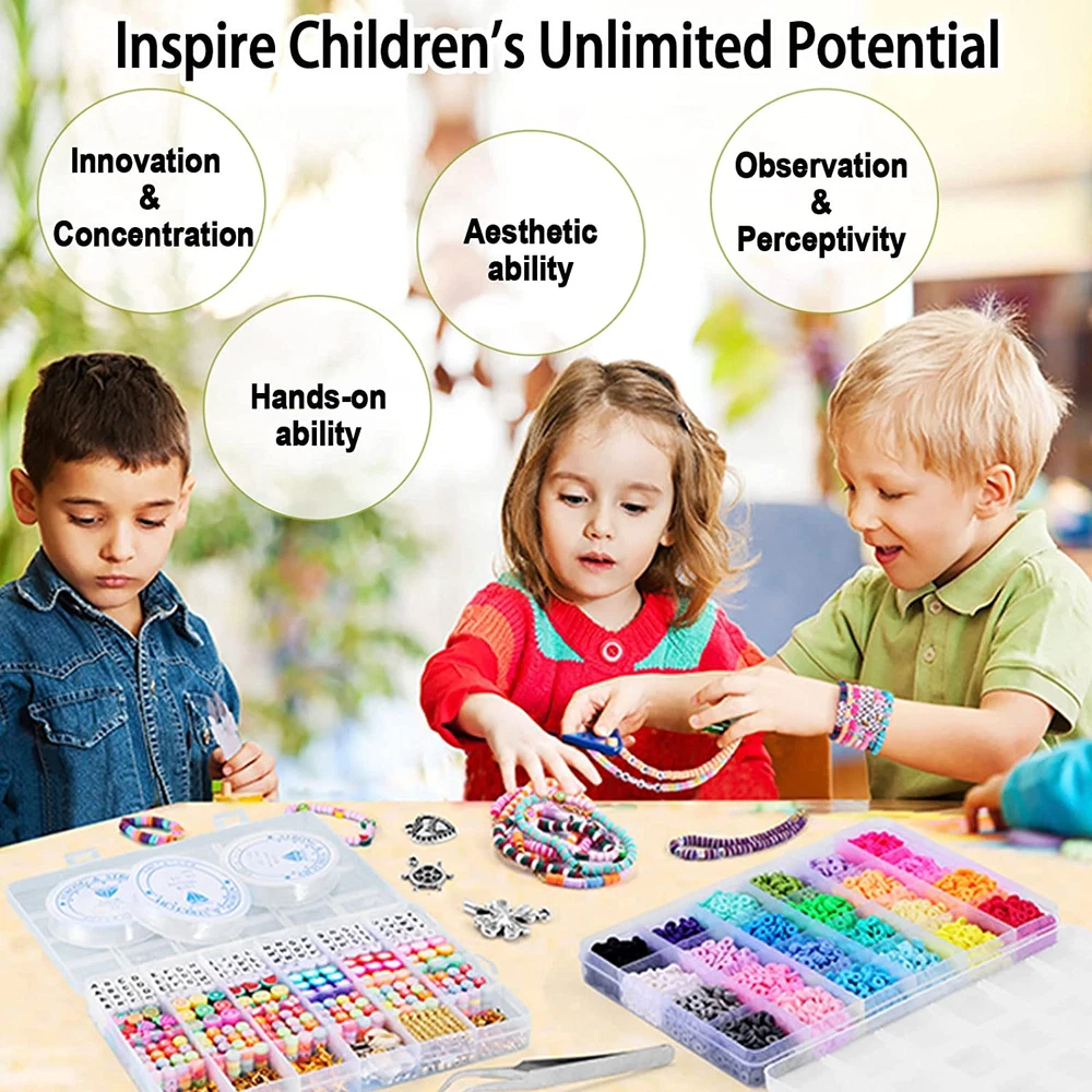 Menu Other Items Feedbacks About Us Contact Us Add To Favorites Bracelet Making Kit, 7400 Pcs Clay Beads Flat round Clay Beads for Jewelry Making Crafts Gift for Girls Ages 3-12(2 Box) ๐๐ฅ๐ฅ ๐ข๐ง ๐๐ง๐ ๐๐๐ญ ๐๐ซ๐๐๐๐ฅ๐๐ญ ๐๐๐ค๐ข๐ง๐ ๐๐ข๐ญ: Include 7400 different polymer clay beads, 1400 charms, 4 rolls of 1-meter elastic strings, 1 scissor, 1 tweezer.(not included display stand) ๐๐จ๐ซ๐ ๐๐ฉ๐ญ๐ข๐จ๐ง๐ฌ, ๐๐ฎ๐๐ก ๐๐จ๐ซ๐ ๐ ๐ฎ๐ง: This will make your jewelry more beautiful personalized and interesting,Great Gift for Valentine's Day ๐๐จ๐ฎ๐ซ ๐๐๐๐๐ญ๐ฒ ๐๐จ๐ฆ๐๐ฌ ๐ ๐ข๐ซ๐ฌ๐ญ: Our beads made of polymer clay, a type of PVC material. ๐๐ข๐๐ ๐๐ฉ๐ฉ๐ฅ๐ข๐๐๐ญ๐ข๐จ๐ง: This Beads is wonderful for all kinds of jewelry making, DIY handicrafts,and so on ๐๐ซ๐๐๐ญ ๐๐ข๐๐ญ ๐๐จ๐ซ ๐๐ก๐ข๐ฅ๐๐ซ๐๐ง๏ผTurn the children's attention on crafts work Product Description Colorful beads Letter beads Hearts & fruits beads Parent Child String Many Color Series Satisfy Your Demand Ours How to Use Can make Parent &Child Strings 1 Parent Child String 2 Many Color Series 3 Satisfy Your Demand 4 Ours 5 How to Use Great gift for your children The video showcases the product in use. The video guides you through product setup. The video compares multiple products. The video shows the product being unpacked. Item Specification Item dimensions L x W x H 8.86 x 6.3 x 2.76 inches Number of Items 7400 Color colorful Included Components 7400 polymer clay beads, 1400 charms, 4 rolls of elastic strings, 1 scissor, 1 tweezer Material Polymer Clay (PVC) Country of Origin China Style Modern Item Weight 1 pounds Theme Crafting Model Name bracelet making kit , beads for jewelry making, beads for bracelets making ,clay Bracelet Making Kit ,clay bead for bracelet making bracelet making kit for girls clay bead kit diy bracelet making kit Seasons Summer Age Range (Description) Kid Art Craft Kit Type Jewelry Making Kit Number of Pieces 7400 Product Dimensions 8.86 x 6.3 x 2.76 inches Dimensions Shipping Returns Additional Info Product Dimensions: 6.3 inches x 8.86 inches x 2.76 inches. Weight: 1.0 lb Fast shipping is very important for us. Our standard shipping service is FREE. Your order will be shipped within 1-3 business days upon full payment received. Most items are delivered within 3-5 business days, however, please allow 3-10 business days. We are shipping only to USA. We only ship to the confirmed Paypal address. We reserve the right to cancel any order for any reason at any time. We are not responsible for undeliverable addresses. We offer a 30 day return policy from checkout winning date. Your satisfaction is guaranteed! If for any reason you are unhappy with your item, just return it within 30 days for a full refund, minus shipping cost. Please contact us prior to initiating a return so that we can issue you a refund authorization. Items defective upon receipt must be packaged in their retail packaging as if new and returned with a detailed description of the problem. Return shipping fees are not refundable. We reserve the right to decline any returns if the above guidelines are not followed. All of our items, unless otherwise stated, will only run on 120 volts. Please check to make sure your country complies with these specifications. If you have a problem or question regarding your transaction please contact us before leaving any type of feedback. We will work with you to resolve any problem you may have.