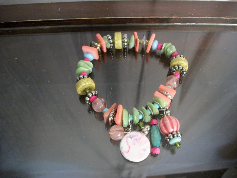 Handmade:YesCountry of Origin:United StatesMain Stone Color:MulticolorVintage:NoType:BraceletAntique:NoSigned:NoStyle:CharmWholesale:NoColor:MulticolorCharm Type:BeadMaterial:ResinCountry/Region of Manufacture:United StatesTheme:Art, BeautyBrand:Unbranded