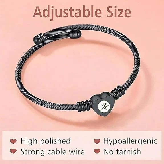Elegant but cute bangle bracelet with heart charm, fashionable and perfect to bright up your overall outfit. This romantic heart design with adjustable size feature will make it great mother gift and best friend bracelet. Customizable: We can engrave some words on the heart charm for you. Size:The Letter Cuff Initial Bangle Bracelet is Expandable,You can use a soft ruler to measure the circumference of your wrist or ankle so that you can choose the product that suits you. Material: Alphabet Cuff Letter Initial Bangle Bracelet jewelry is made of high quality stainless steel which is 100% safe for sensitive skin ,and it has been electroplated so it will not fade,tarnish,rust or stain. This beautiful Letter Initial Alphabet cuff bangle bracelet can be as a fashion gift for mother or father or grandfather or grandmother or brother or sister or wife or husband or daughter or son and other loved ones.This charming anklet jewelry is suitable for all occasions, all kinds of anniversaries and all people like women,men,boys,girls,adults,elder people or children.For different people,it has different meanings and expresses different feeling. Packaging: We will carefully package the product, you don't have to worry about the jewelry charm being damaged. After-sales service: We sincerely serve you, if you have any other questions, you can contact us at any time, we are happy to serve you.