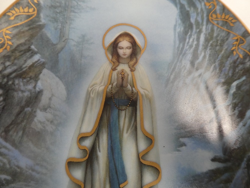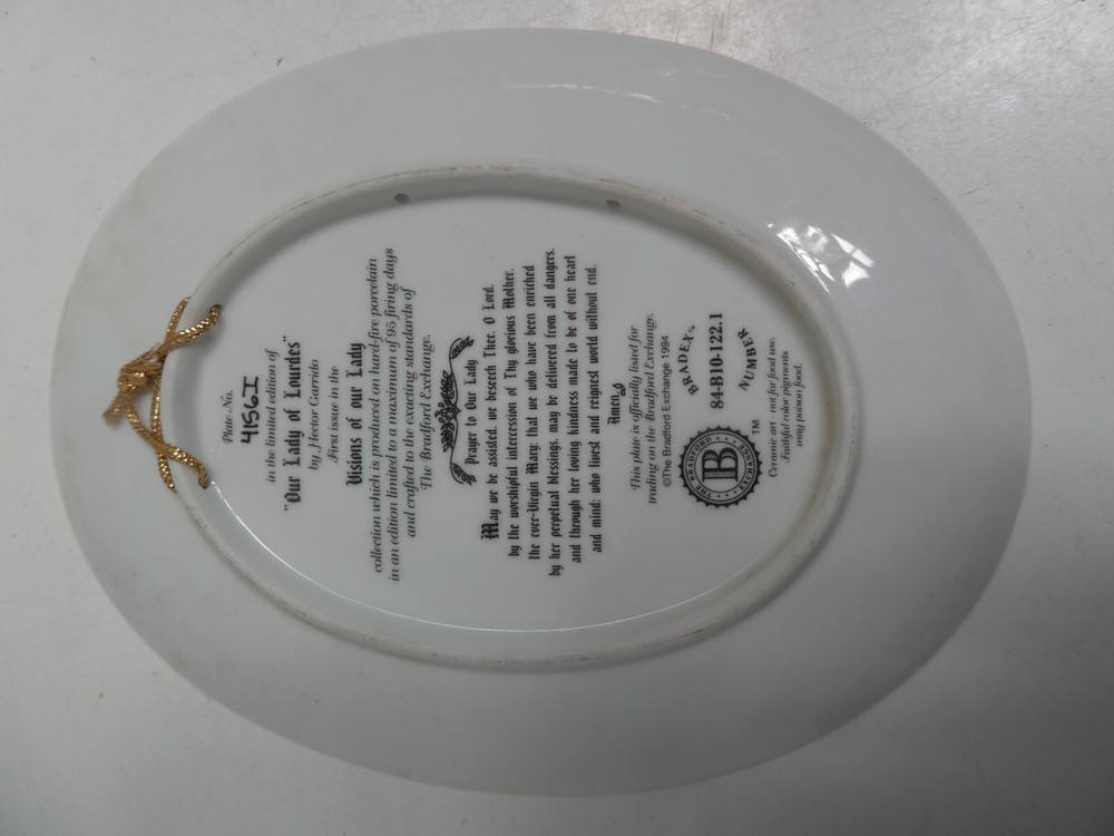 BRADFORD EXCHANGE PORCELAIN OVAL WALL PLATE MARY OUR LADY OF LOURDES GOOD CONDITION STAMPED TO BACK 21.5 CM x 16.5 CM SEE PHOTOS FOR BEST GUIDE TO CONDITION I AM LISTING SOME OTHER ESTATE PIECES I can combine for postage. CHECK MY OTHER LISTINGS FOR MORE
