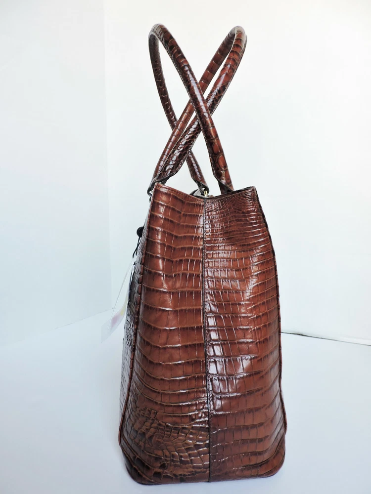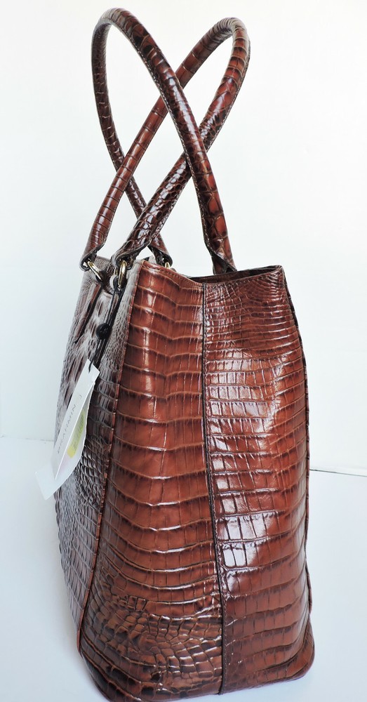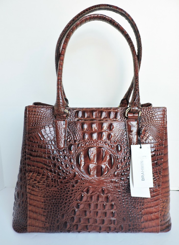 Brand New, With Tags, Never Been Used, Brahmin Joan Tote Pecan Brown Croc Embossed Leather Shopper. Croc Embossed Body, Rolled Double Brown Straps With Slip Phone Pocket On Back Of Bag. Gold Tone Hardware With Magnetic Closure On Leather Strap . Five Gold Tone Feet On Bottom Of Bag. Interior Signature Lining With Center Zippered Section With Additional Zipper Pocket On Back Wall Of Bag,Two Utility Pockets Trimmed In Leather , Small Zipper Jewelry Pocket, Utility Pockets, Two Pen Holders. Registration Card And Dust Bag. Purchased from Dillard's Department Store. Must request RMA within 3 days of receipt of item. Item must be returned with all tags attached in unused condition with all materials returned to receive refund. Photos Taken With And Without Flash, Monitors May Vary Color! View Store For More Great Items ! Be sure to add me to your saved seller list ! Must Contact Within 3 Days Of Receipt For RMA To Return. All Tags Must Be Attached, In Unused Condition With All Materials For Refund. Please ask all questions, read all details of listing or request more photos before bidding.