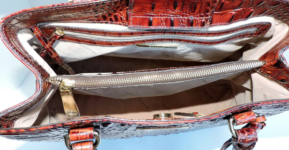 This Brahmin Joan Tote is absolutely stunning! The pecan brown croc-embossed leather looks luxurious, and the gold hardware adds a chic touch. It’s so spacious inside with multiple pockets, including a zippered section and handy pen holders. The rolled straps are comfortable, and the magnetic closure keeps everything secure. Brand new with tags and dust bag—such a great find! Perfect for work or travel, and the quality is top-notch. Love it!