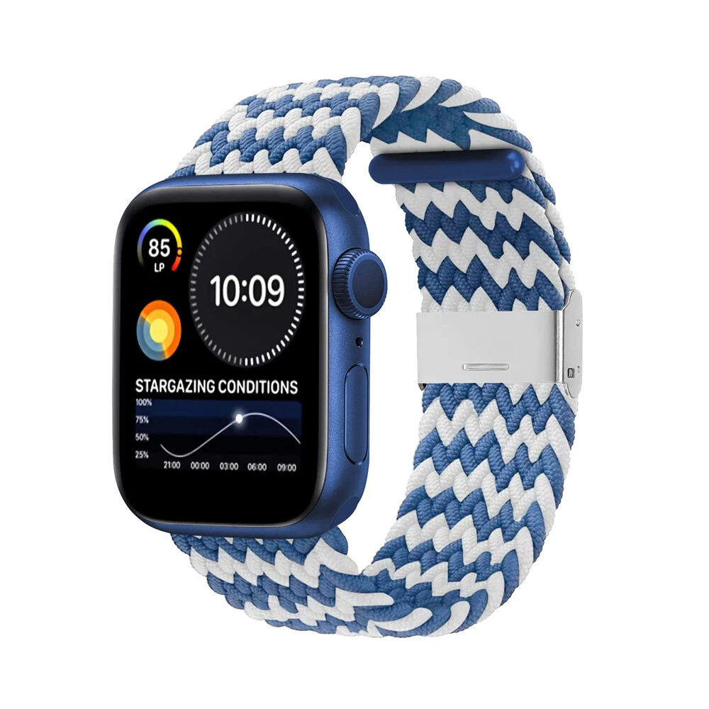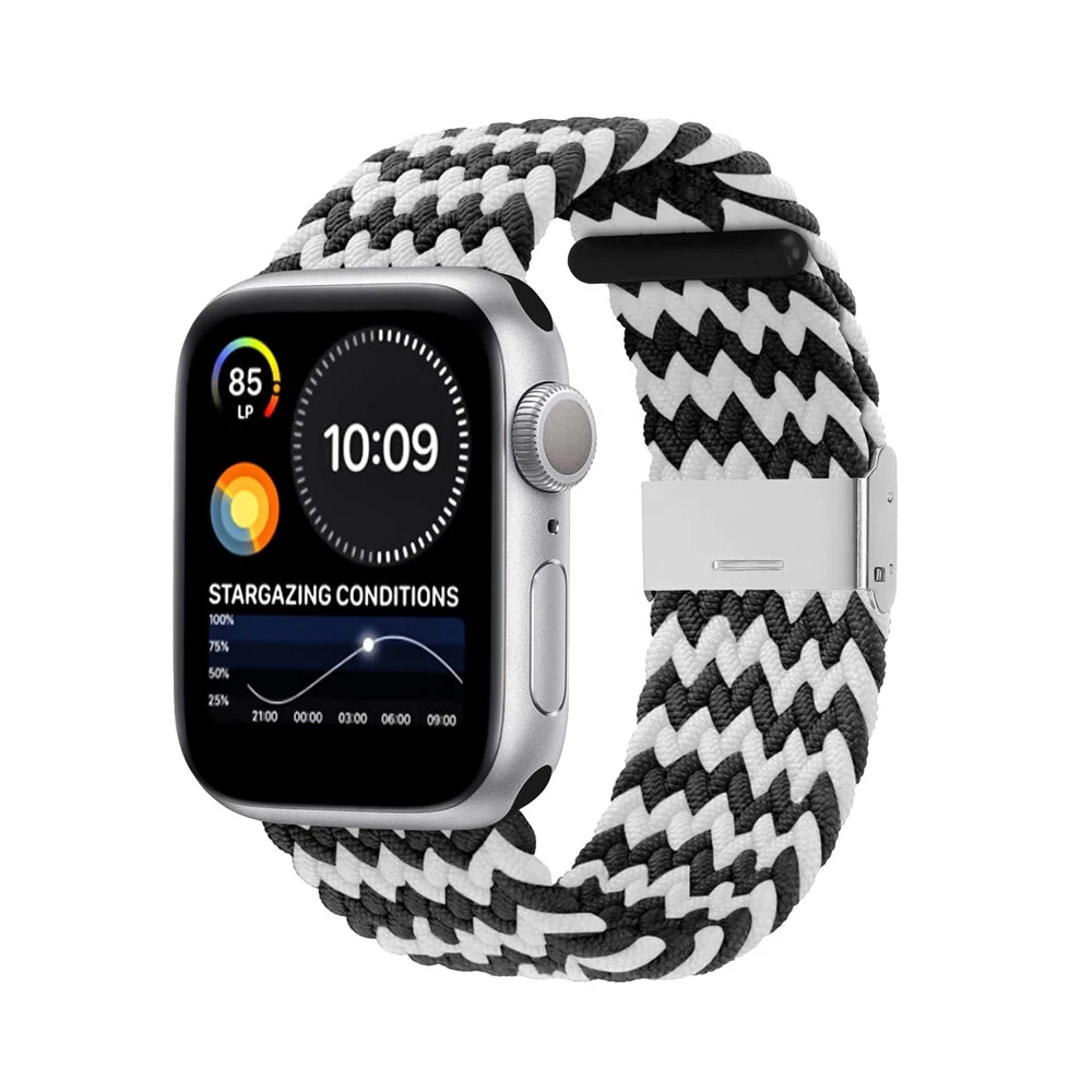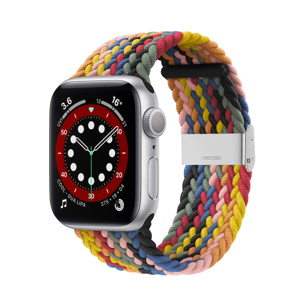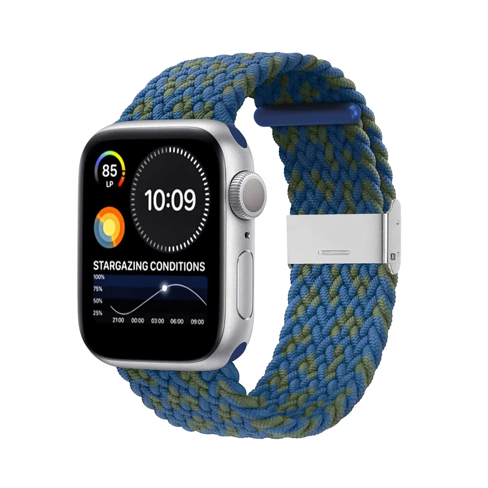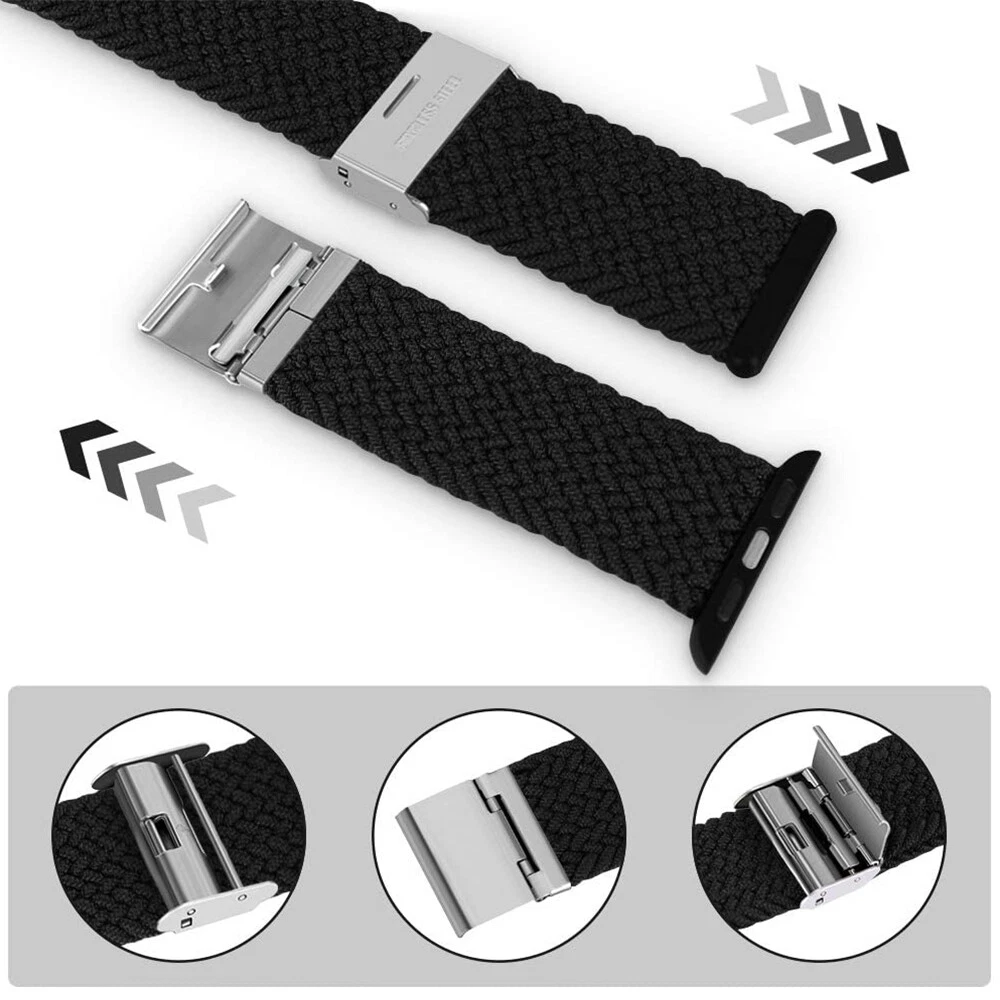 Braided Nylon Sport Loop Band for Apple Watch Series 9 8 7 6 5 SE 40/44/41/45mm Features: ● 100% Brand new and high quality. 【Adjustable Braided Solo Loop】 Stretchy braided sport bands for iwatch bands with BUCKLE, you can adjust the length of iwatch bands to fit your wrist perfectly. Adjustable BUCKLE design for apple watch bands ensures you get the ultracomfortable wearing experience, solve the size trouble perfectly. 【Personalized Design】 The stretchable and adjustable apple watch band is upgraded. This band uses a custom-designed ultra-thin stainless steel slider, which can be adjusted in length and can be easily slipped on the wrist. The stretchable and adjustable elastic woven replacement band 38mm/40mm size fits 4.5"-7.9" (114-200mm) wrist, 42mm/44mm size fits 5.5"-8.5"(140-216mm) wrist. 【Skin-Friendly Materal】 This apple watch band is made of polyester yarn braided around silicone thread from 100 percent recycled materials. The 300D construction offers a soft, textured feel and is both sweat-resistant and water-resistant. 【Easy to Install and Remove】 The braided solo loop comes with iwatch lugs on both ends, which locks onto your iwatch precisely and securely. Easy for installing directly and removing with one button. Compatible With: > For Apple Watch Ultra / Ultra 2 > For Apple Watch Series 9 / Series 8 / Series 7 / Series 6 / Series 5 / Series 4 / Series 3 / Series 2 / Series 1 / > For Apple Watch Nike > For Apple Watch Hermes > For Apple Watch SE Package Contents: 1x Adjustable Nylon Sport Loop Band ONLY !!! ( PS: The Apple Watch in picutures is Not Included )