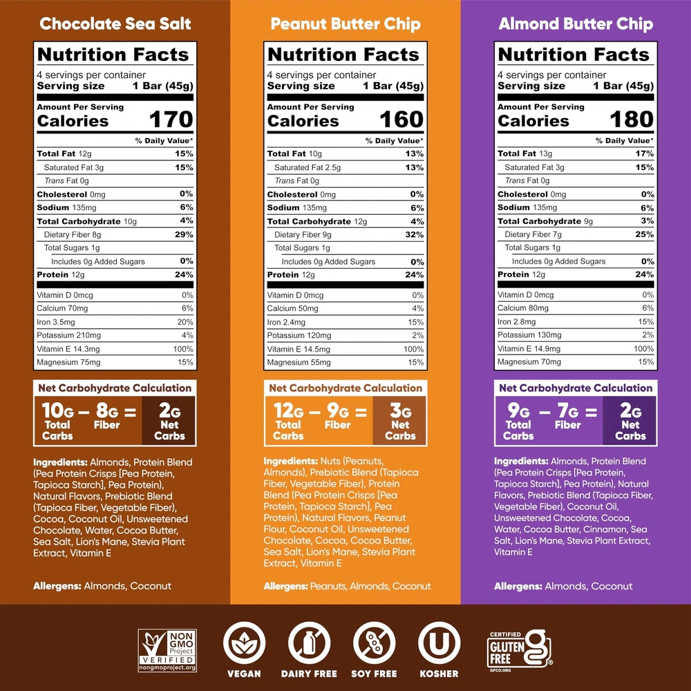 Brain and Body Plant Protein Bars - Chocolate Lovers Variety - 12 Count, Low Carb, High Fiber, Gluten Free, Vegan Snacks - Low Sugar Keto Bars NO. 1 KETO-FRIENDLY SNACK BARS FOR BRAIN & BODY - low carb bars are made using simple ingredients + brain nutrients. Designed to keep you full, focused & energized throughout the day, our gluten free protein bars also contain 12g plant-based protein, 1g sugar, & only 2-3 net carbs. These vegan keto bars are the ideal low calorie snack to support your active & healthy lifestyle DIET-FRIENDLY PROTEIN SNACKS - Our protein bars are diet-friendly. high protein snacks are vegan, keto-friendly, dairy-free, soy-free, kosher & high in fiber. Our breakfast bars are made using clean-label ingredients and natural flavors that are packed full of nutrients, healthy fats, and compounds for both your brain and body. Moreover, our bars are developed with every diet restriction including celiac, paleo, and vegan PACKED WITH NUTRIENTS FOR THE BRAIN & BODY - clean vegan protein bars are loaded with brain-boosting nutrients, such as Lion’s Mane, Magnesium, Vitamin E, MCTs & Flavonoids. We use a science-backed formulation to provide you with healthy & tasty nutrition bars for your active & busy lifestyle. Throw them in a backpack or lunch box for your kids to enjoy a healthy middle of the day snack. Perfect college care package inclusion for your busy student away MEAL REPLACEMENT BARS YOU CAN ENJOY ON-THE-GO - plant based breakfast bars are convenient meal replacement bars you can enjoy anytime, anywhere. Enjoy our low sugar protein bars right after an intense workout, in the middle of a hectic day at work, or while running errands. Our keto protein bars are perfect for any time of day KETO FRIENDLY SNACKS w/ Only 2-3g Net Carbs in Every Serving - Net carbs are carbs that are absorbed by the body, and our keto treats come with only 2-3g of net carbs in each bar. Each plant based protein bar is packed with 9-12g of total carbs, 7-9g of fiber, 10-13g of fats & 160-180 calories. Enjoy our 3 flavors Chocolate Sea Salt, Peanut Butter Chip, Almond Butter Chip Shipping We offer FREE shipping on all orders! We ship within Three business days of payment, usually sooner. We use a selection of shipping services such as UPS, FedEx, USPS etc. We only ship to the lower 48 states, no APO/FPO addresses or PO Boxes allowed. Local pickups and combined shipping options are not provided at this time. Return You can return a product for up to 30 days from the date you purchased it. Any product you return must be in the same condition you received it and in the original packaging. Please keep the receipt. Payment We accept payment by any of the following methods: PayPal Please pay as soon as possible after winning an auction, as that will allow us to post your item to you sooner! Feedback Customer satisfaction is very important to us. If you have any problem with your order, please contact us and we will do our best to make you satisfied. Contact Us If you have any queries, please contact us via ebay. We usually respond within 24 hours on weekdays. Please visit our eBay store to check out other items for sale! Thank you for shopping at our store.