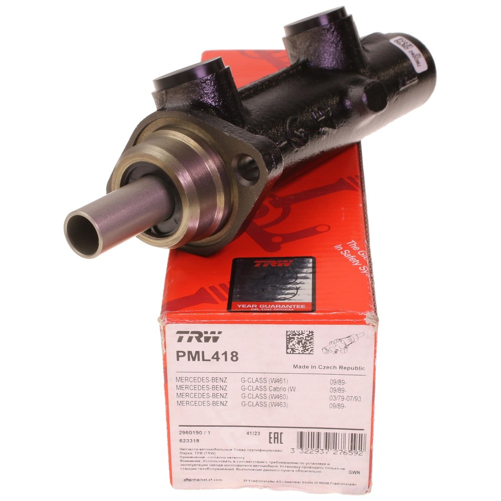 TRW PML418 Brake Master Cylinder for Mercedes-Benz G500: 2009 - 2015, Mercedes-Benz G55 AMG: 2003 - 2004, 2008 - 2011 The brake master cylinder is a vital component in a vehicle's braking system, responsible for converting the force of the brake pedal into hydraulic pressure that activates the brake calipers. Without a properly functioning brake master cylinder, a vehicle's braking power and responsiveness can be significantly reduced, putting the safety of the driver and passengers at risk. With a TRW Aftermarket Brake Master Cylinder you get: - A robust brake cylinder manufactured in steel, aluminium or cast iron - The option to choose light aluminium bodies to reduce vehicle weight - A high coverage range of premium quality parts, all supplied with fitting accessories - A protective, durable and environmentally friendly coating with the latest chrome 6-free ‘silver’ finish for steel and cast iron models - Original equipment spec rubber seals and dust caps to resist ageing ]]>