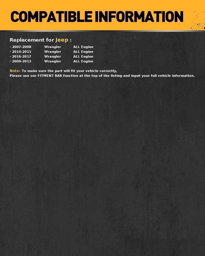 Compatibility: AC Condenser For 2003-2004 Toyota Corolla Matrix 1.8L 4Cyl With Drier Aluminum Compatibility: 2003-2004 Toyota Corolla 2003-2004 Toyota Matrix Features: -Aluminum construction to ensure heat transfer efficiency -Louvered aluminum fins and tubes are bonded through a unique furnace-brazing process with premium quality aluminum for maximum heat dissipation -Each product is quality inspected and 100% tested -Lightweight Direct Bolt-On OEM Fitment or Replacement -Guaranteed Exact Fit for easy installation Know about the AC Condenser: AC Condenser: The condenser is part of the A/C system. It receives the hot, high-pressure gaseous refrigerant from the compressor and cools it to a warm liquid state, although still under high pressure. Location: The Condenser is located right in front of the radiator. High pressure (hot) refrigerant travels through it and cools off as air passes through. Most late-model condensers cannot be flushed due to multiple flow paths, and must be replaced if restricted. Check: If testing proves that your condenser is leaking, restricted, or otherwise damaged, don’t pay the high dealer price for a replacement, when you can get an OE quality condenser for much less from Replace. Package: 1pc of brand new ac condenser Item Specifics Brand KAX Features 25.69 x 15.38 x 0.63 in. Core Size Fitment Type Direct Replacement Interchange Part Number 73085 Manufacturer Part Number KVAC3085 Manufacturer Warranty 5 Years Material Aluminum Notes With Receiver Drier; Color/Finish may vary and won't affect the p OE Number 8845002170 OE/OEM Part Number 8845002170 Part Link Number TO3030184 Part Name A/C Condenser Partslink Number TO3030184 Quantity Sold individually Returns Policy 60-Day Return Policy Superseded Part Number 73085 Universal Fitment No Payment FREE SHIPPING on all products within 50 States USA! USA Sales & Support - We are a 100% USA Seller! We ship 5 Days a week (Mon-Friday) excluding major Holidays. Tracking Number will be uploaded to eBay and or / Emailed to you typically within 24 hours of shipment. International Customers may be subject to customs fees that are out of our control. International shipments may take longer than the eBay specified time due to country customs. We only accept Paypal. Quantity orders are welcome! Shipping USA Sales & Support - We are a 100% USA Seller! We ship 5 Days a week (Mon-Friday) excluding major Holidays. Tracking Number will be uploaded to eBay and or / Emailed to you typically within 24 hours of shipment. International Customers may be subject to customs fees that are out of our control. International shipments may take longer than the eBay specified time due to country customs. We only accept Paypal. Quantity orders are welcome! Returns 1. All our product share 1-year warranty. If incorrect or defective item when you receive it, please feel free to contact us via eBay message. We promise no extra charges, we will pay return shipping fee and arrange replacement ASAP. 2. If buyer want to return the product without any problem, buyer should pay return shipping fee. The item must be returned in good condition and its original packaging and accessories, never installed or mounted. We will not accept returns after 30 days of delivery date. Contact Us 1. Any problem, complaint or suggestion happened during transaction, please contact us before leaving any feedback. We are committed to resolve all issues in a friendly and satisfactory manner. 2. We will solve your problem during working time (except weekends and public holidays). Thank you! DESCRIPTION PAYMENT SHIPPING RETURN POLICY CONTACT US Shop Category Store Home Starter Alternator Headlights Assembly Brake Pads Brake Rotors Power Steering Pump Timing Belt Kit & Water Pump Tires Radiator Other Excellent Delivery Hot Item Air AC A/C Compressor For Sanden SD508 For 1985-1990 Jeep Wrangler CO9537C USD 99.99 Set of 4 Ignition Coil For 2009-2013 Hyundai Santa Fe Kia Forte Optima L4 UF611 USD 28.49 Radiator For 2000 2001 2002 2003 2004 Nissan Pathfinder Infiniti QX4 V6 3.5L USD 74.99 Starter For Acura RSX Type-S Coupe 2-Door 2.0L 2002 DSDH9 17886 31200PRBA01 USD 51.99 AC COMPRESSOR CLUTCH KIT COIL PULLEY FITS: 2015 - 2019 SUBARU WRX 4 CYL 2.0L USD 43.99 New List Item For 09-2012 Toyota RAV4 L+R Pair Clear Bumper Fog Lights Driving Lamps+Switch USD 40.84 For 2007-2013 GMC Sierra 1500/2007-2014 2500HD 3500HD Bumper LED Fog Lights Kit USD 32.99 New Starter Fits Kia 2.7L Sportage 2005 2006 2007 2008 36100-37210 17764 12V USD 48.99 6726 SR111022 Starter For Chevrolet Aveo 1.6L 4 Cyl 2004 2005 2006 2007 2008 USD 49.99 Clear Bumper Fog Light for 2007-2013 Chevy Silverado 1500 2500 HD Tahoe USD 34.19 Help & Info Payment Policy Shipping Policy Return Policy FAQ About Us Brake Master Cylinder w/ Reservoir & Sensor for Jeep Wrangler JK 2007-2017 Item Type: Brake Master Cylinder Condition: Brand New Warranty: One Year Warranty OE Number: M630517, 68003617AA, 68003617AB, 68057474AA, 68057474AB Quantity Sold: One Piece Note: Bore: 1 in., with Reservoir, with Sensor Vehicle Information: Make Model Series Year Note Jeep Wrangler JK 2007-2008 Jeep Wrangler JK 2009-2013 Exc. Heavy Duty Brakes Jeep Wrangler JK 2014-2015 With Sales Code BRW (4 Wheel Disc Brakes) Jeep Wrangler JK 2016-2017 Exc. Heavy Duty Brakes Product Specifications: Condition New Master Cylinder Bore Diameter 1 In. Master Cylinder Material Aluminum Number of Outlets 2 Forward Outlet Size 3/8-24 Rearward Outlet Size 7/16-24 Reservoir Included Yes Sensor Included Yes Package Quantity 1 Packaging Type Box Fitment Type Direct Replacement Item Specifics Brand KAC California Prop 65 Warning Yes Type Master Cylinder Manufacturer Part Number 68003617AA, 68003617AB, 68057474AA, 68057474AB Material Aluminum Manufacturer Warranty 1 Year Interchange Part Number M630517 Fitment Type Direct Replacement Compatible Makes for Jeep Model Wrangler Series JK Year 2007-2017 Note Bore: 1 in., with Reservoir, with Sensor UPC Does not apply Payment F