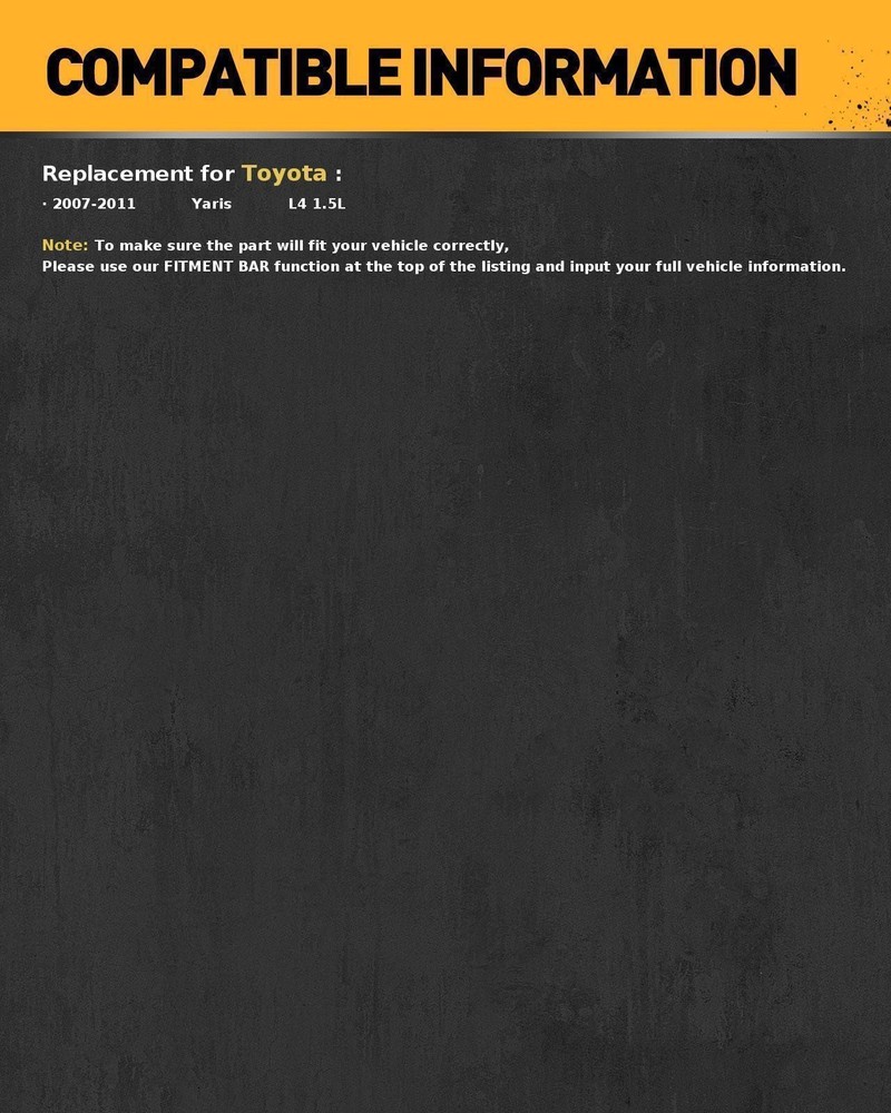 Compatibility: AC Condenser For 2003-2004 Toyota Corolla Matrix 1.8L 4Cyl With Drier Aluminum Compatibility: 2003-2004 Toyota Corolla 2003-2004 Toyota Matrix Features: -Aluminum construction to ensure heat transfer efficiency -Louvered aluminum fins and tubes are bonded through a unique furnace-brazing process with premium quality aluminum for maximum heat dissipation -Each product is quality inspected and 100% tested -Lightweight Direct Bolt-On OEM Fitment or Replacement -Guaranteed Exact Fit for easy installation Know about the AC Condenser: AC Condenser: The condenser is part of the A/C system. It receives the hot, high-pressure gaseous refrigerant from the compressor and cools it to a warm liquid state, although still under high pressure. Location: The Condenser is located right in front of the radiator. High pressure (hot) refrigerant travels through it and cools off as air passes through. Most late-model condensers cannot be flushed due to multiple flow paths, and must be replaced if restricted. Check: If testing proves that your condenser is leaking, restricted, or otherwise damaged, don’t pay the high dealer price for a replacement, when you can get an OE quality condenser for much less from Replace. Package: 1pc of brand new ac condenser Item Specifics Brand KAX Features 25.69 x 15.38 x 0.63 in. Core Size Fitment Type Direct Replacement Interchange Part Number 73085 Manufacturer Part Number KVAC3085 Manufacturer Warranty 5 Years Material Aluminum Notes With Receiver Drier; Color/Finish may vary and won't affect the p OE Number 8845002170 OE/OEM Part Number 8845002170 Part Link Number TO3030184 Part Name A/C Condenser Partslink Number TO3030184 Quantity Sold individually Returns Policy 60-Day Return Policy Superseded Part Number 73085 Universal Fitment No Payment FREE SHIPPING on all products within 50 States USA! USA Sales & Support - We are a 100% USA Seller! We ship 5 Days a week (Mon-Friday) excluding major Holidays. Tracking Number will be uploaded to eBay and or / Emailed to you typically within 24 hours of shipment. International Customers may be subject to customs fees that are out of our control. International shipments may take longer than the eBay specified time due to country customs. We only accept Paypal. Quantity orders are welcome! Shipping USA Sales & Support - We are a 100% USA Seller! We ship 5 Days a week (Mon-Friday) excluding major Holidays. Tracking Number will be uploaded to eBay and or / Emailed to you typically within 24 hours of shipment. International Customers may be subject to customs fees that are out of our control. International shipments may take longer than the eBay specified time due to country customs. We only accept Paypal. Quantity orders are welcome! Returns 1. All our product share 1-year warranty. If incorrect or defective item when you receive it, please feel free to contact us via eBay message. We promise no extra charges, we will pay return shipping fee and arrange replacement ASAP. 2. If buyer want to return the product without any problem, buyer should pay return shipping fee. The item must be returned in good condition and its original packaging and accessories, never installed or mounted. We will not accept returns after 30 days of delivery date. Contact Us 1. Any problem, complaint or suggestion happened during transaction, please contact us before leaving any feedback. We are committed to resolve all issues in a friendly and satisfactory manner. 2. We will solve your problem during working time (except weekends and public holidays). Thank you! DESCRIPTION PAYMENT SHIPPING RETURN POLICY CONTACT US Shop Category Store Home Starter Alternator Headlights Assembly Brake Pads Brake Rotors Power Steering Pump Timing Belt Kit & Water Pump Tires Radiator Other Excellent Delivery Hot Item Air AC A/C Compressor For Sanden SD508 For 1985-1990 Jeep Wrangler CO9537C USD 99.99 Set of 4 Ignition Coil For 2009-2013 Hyundai Santa Fe Kia Forte Optima L4 UF611 USD 28.49 Radiator For 2000 2001 2002 2003 2004 Nissan Pathfinder Infiniti QX4 V6 3.5L USD 74.99 Starter For Acura RSX Type-S Coupe 2-Door 2.0L 2002 DSDH9 17886 31200PRBA01 USD 51.99 AC COMPRESSOR CLUTCH KIT COIL PULLEY FITS: 2015 - 2019 SUBARU WRX 4 CYL 2.0L USD 43.99 New List Item For 09-2012 Toyota RAV4 L+R Pair Clear Bumper Fog Lights Driving Lamps+Switch USD 40.84 For 2007-2013 GMC Sierra 1500/2007-2014 2500HD 3500HD Bumper LED Fog Lights Kit USD 32.99 New Starter Fits Kia 2.7L Sportage 2005 2006 2007 2008 36100-37210 17764 12V USD 48.99 6726 SR111022 Starter For Chevrolet Aveo 1.6L 4 Cyl 2004 2005 2006 2007 2008 USD 49.99 Clear Bumper Fog Light for 2007-2013 Chevy Silverado 1500 2500 HD Tahoe USD 34.19 Help & Info Payment Policy Shipping Policy Return Policy FAQ About Us Brake Master Cylinder w/Reservoir for Toyota Yaris 07-11 2019 For Manual Item Type: Brake Master Cylinder Condition: Brand New Warranty: One Year Warranty OE Number: M630472, 47201-52330 Quantity Sold: One Piece Note: Brake Master Cylinder -- Bore: 13/16 In. Vehicle Information: Make Model Year Bore Note Toyota Yaris 2007-2011 13/16 In. Manual Transmission Toyota Yaris 2019-2019 13/16 In. S Sedan 4dr; Manual Transmission Product Specifications: Condition New Product Type Brake Master Cylinder Bore Diameter 13/16 In. Number of Outlets 2 Material Aluminum Forward Outlet Size M10 x 1.0 Rearward Outlet Size M10 x 1.0 Installation Hardware Included No Reservoir Included Yes Sensor Included Yes Package Quantity 1 Packaging Type Box Fitment Direct Replacement Item Specifics California Prop 65 Warning Yes Brand KAC Type Master Cylinder with Reservoir Manufacturer Part Number 47201-52330 Material Aluminum Manufacturer Warranty 1 Year Interchange Part Number M630472 Fitment Type Direct Replacement Compatible Makes for Toyota Model Yaris Year 2007-2011, 2019-2019 Note Brake Master Cylinder -- Bore 13/16 In. UPC Does not apply Payment FREE SHIPPING on all products within 50 States USA! USA Sales & Support - We are a 100% USA Selle