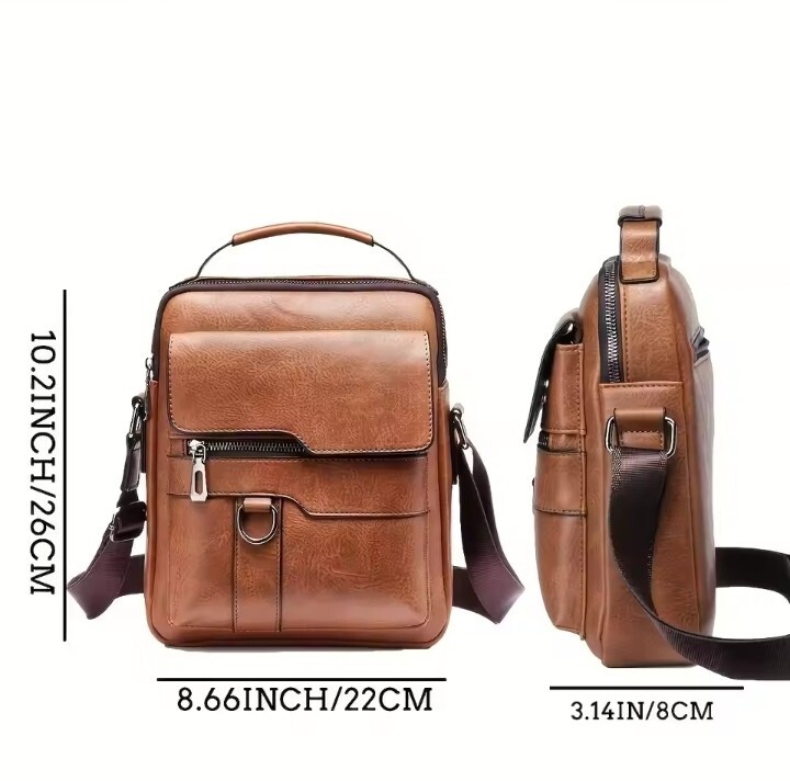 This stylish and functional men's shoulder bag is perfect for carrying your 9.7" iPad and other essentials. Made from high-quality PU leather and featuring brown canvas lining, this bag is both durable and fashionable. The bag has a cross-body strap that can be adjusted to your desired height, making it easy to carry around all day. In addition to the detachable strap, this bag also features outer pockets for easy access to your iPad and other small items. The anti-theft feature ensures that your belongings are safe and secure. This bag is eco-friendly and packable, making it perfect for on-the-go use. The adjustable strap and handle/strap material made of leather provide added comfort and durability. This bag is perfect for art school or anyone looking for a retro-style bag.