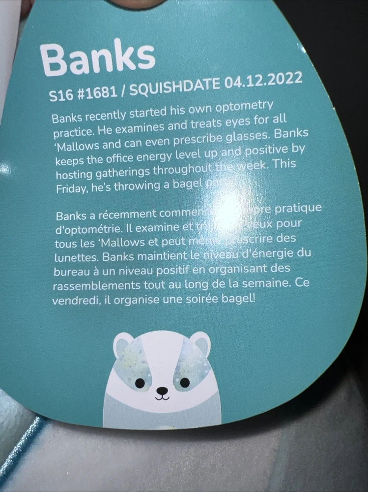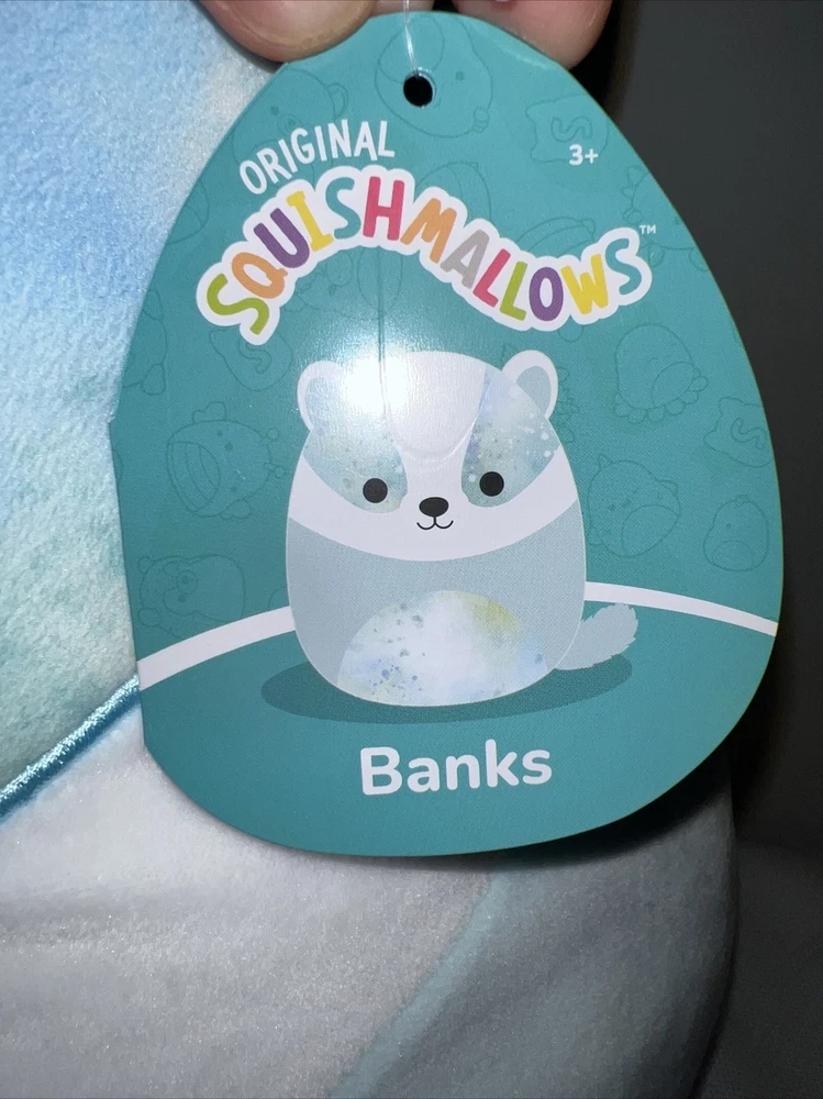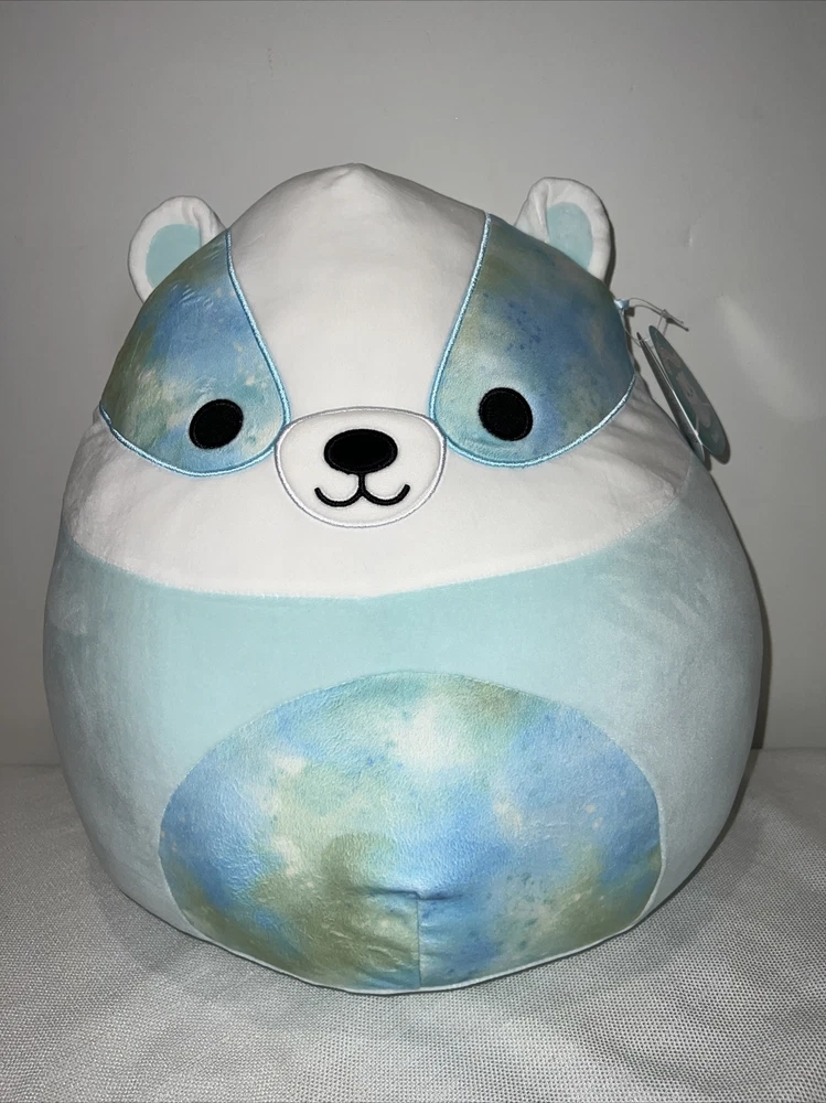 Introducing a brand new addition to your collection, the 16-inch Kellytoy Squishmallows Banks the Blue Badger. This adorable plush toy is perfect for any occasion, whether you're looking for a gift for a loved one or just want to treat yourself. The medium-sized Squishmallow is made from high-quality materials and features a washable design, making it easy to keep clean and looking as good as new. With its bright blue color and rainbow animal design, Banks the Badger is sure to stand out and bring a smile to your face. Suitable for all ages, from infants to adults, this Squishmallow is a must-have for any fan of the popular character family. So why wait? Add Banks the Blue Badger to your collection today and experience the joy of owning a Squishmallow!
