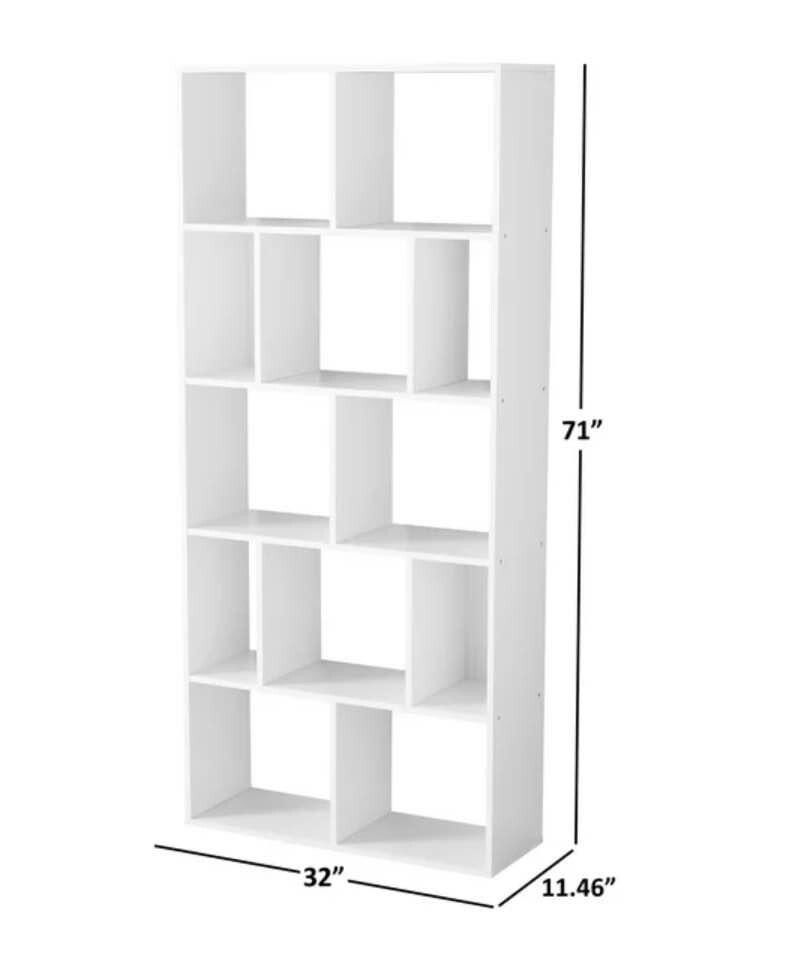 Brand New & Shipped for free via FedEx/ UPS. Dimensions: 32.01"L x 11.46"W x 70.98"H This sturdy storage unit features an open-back construction and twelve divided cubes of varying sizes to create an eclectic look. It stands an impressive 71-inches tall. 12 divided cube selves provide functional storage to large and medium rooms