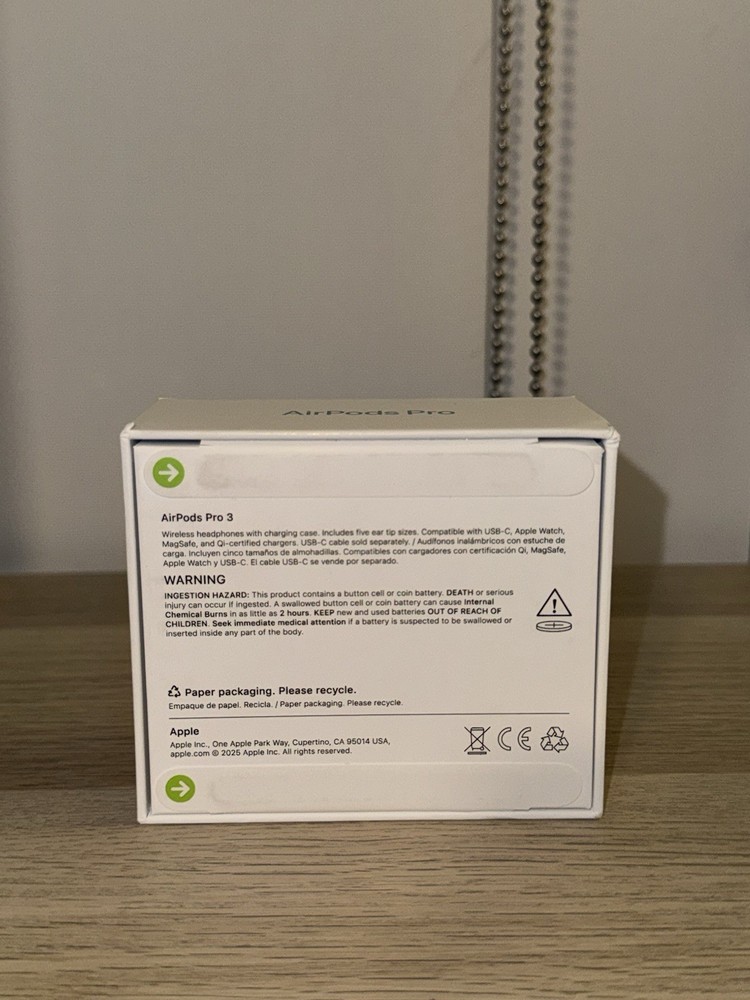 The Brand New AirPods Pro 3 are white, double earpiece in-ear buds by Apple, featuring active noise cancellation and Bluetooth connectivity. These earbuds have a wireless technology range of 5-7.5, come with a built-in microphone, and have a USB C port for charging. Perfect for those looking for high-quality audio and a comfortable, secure fit.