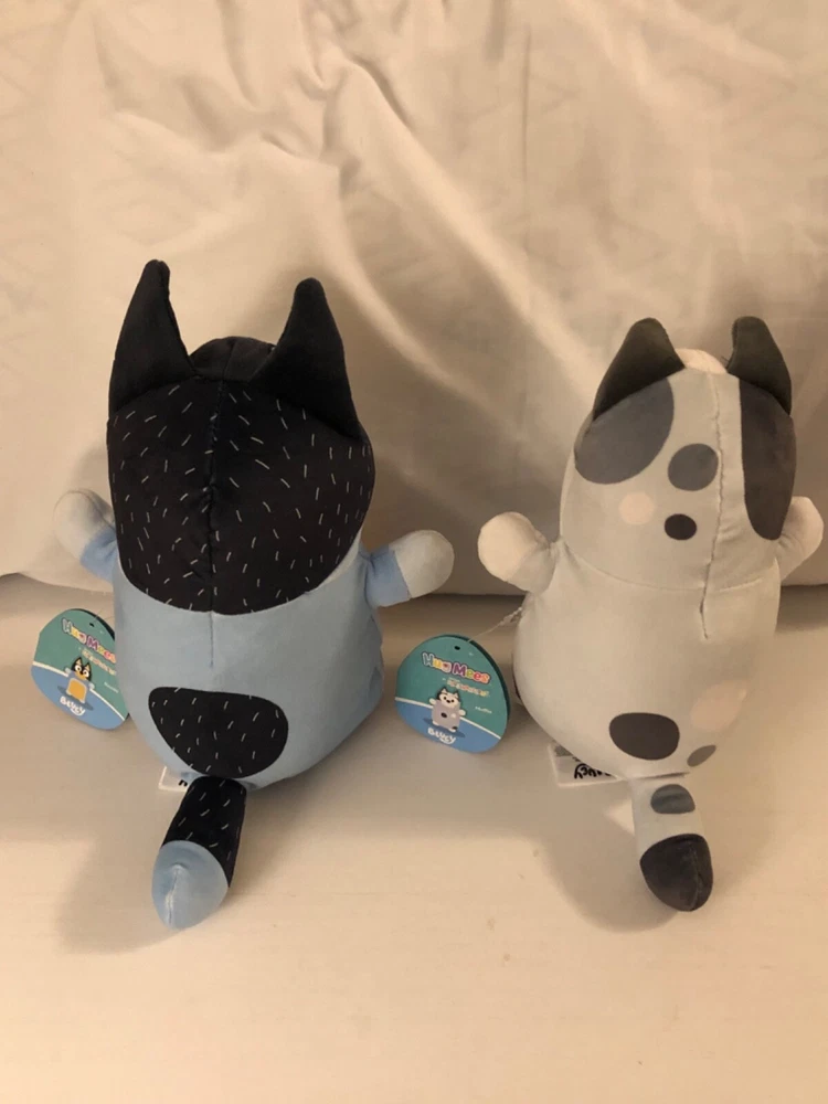 Brand New Bluey Squishmallows Hugmees bandit 10" and muffin 8” Plush set 2024 Relieve some of your favorite moments from the Bluey cartoon with bandit and muffin They come from a pet free smoke free bluey fan home
