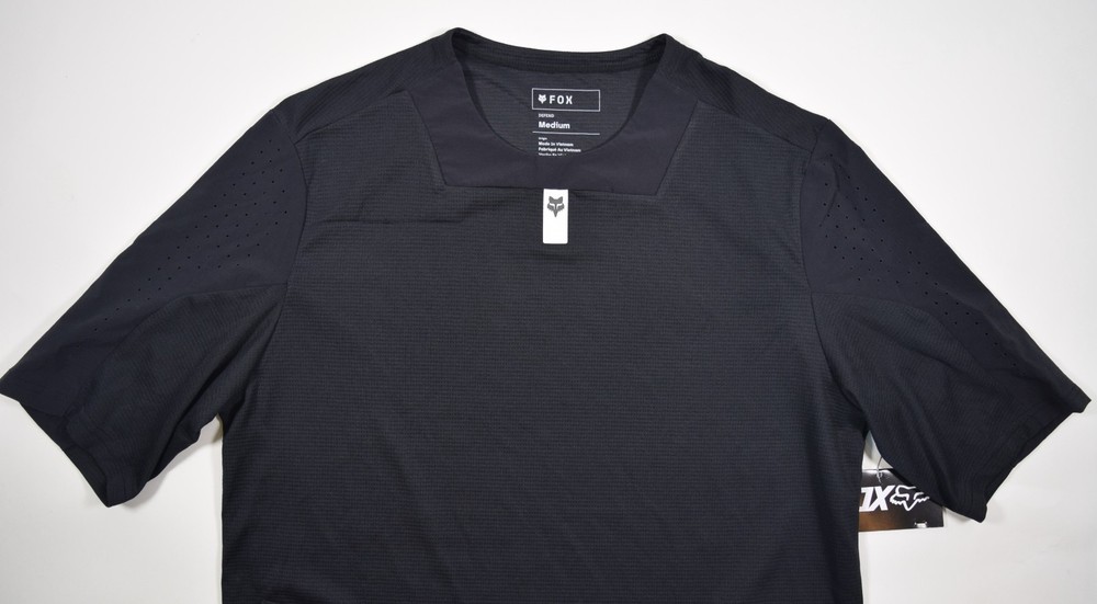 Retail: $70.00 You are buying a Brand New FOX Racing Mens Defend Short Sleeve Jersey Size: Mens Medium Color: Black SKU: 32363-001-M Info: DESCRIPTIONS & FEATURES Fox Racing - Defend Jersey Born to go fast on the trail, the Defend Jersey delivers podium-proven race performance with style. With TruDri® fabric to wick away sweat and keep you cool and dry, the Defend mountain bike jersey is made from recycled fabrics, has a trail-specific cut, and comes with a drop tail for coverage on the move. TruDri® fabric moves sweat away from the body to keep you dry and comfortable Full garment utilizes recycled fabrics Mountain bike-specific tailoring Drop tail back panel for bike-specific coverage Length (HPS): 31", size medium