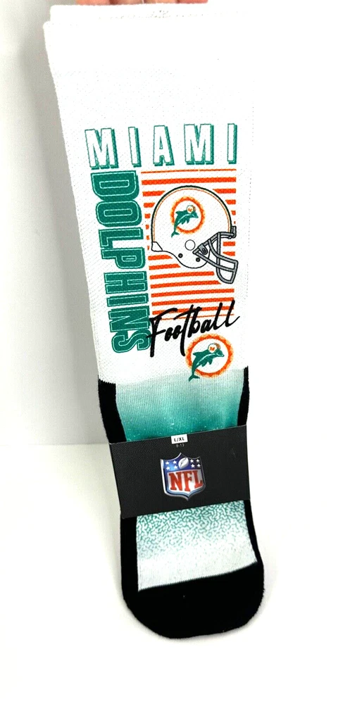 Brand New Awesome Graphic Print Tall Socks! Representing the Miami Dolphins NFL Team. Thank you for considering Theegoatsportngoods for your next fan gear purchase.